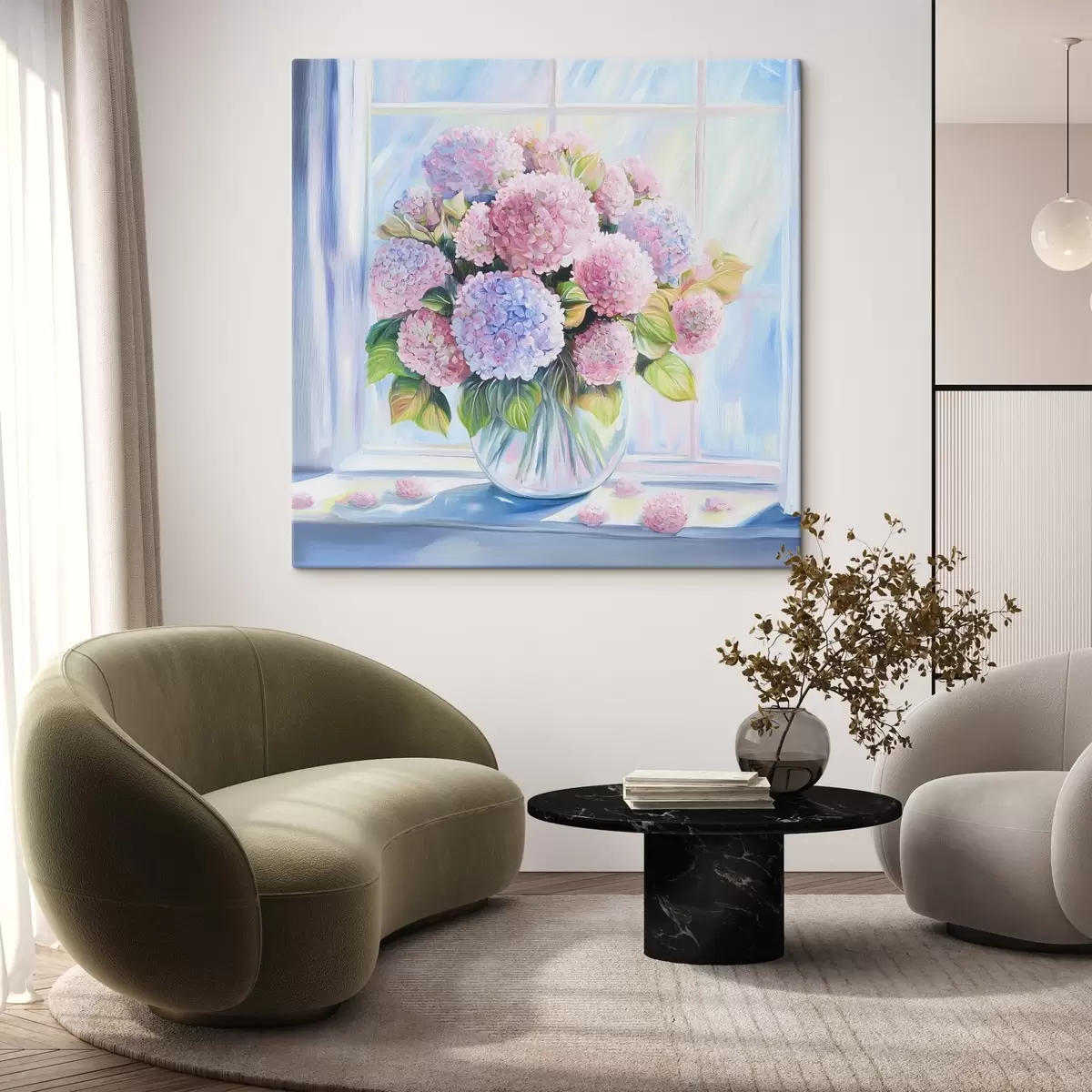 Maali võib riputada kohe pärast selle kättesaamist. Maal on pingutatud 2 cm laiusele puidust kandikule.