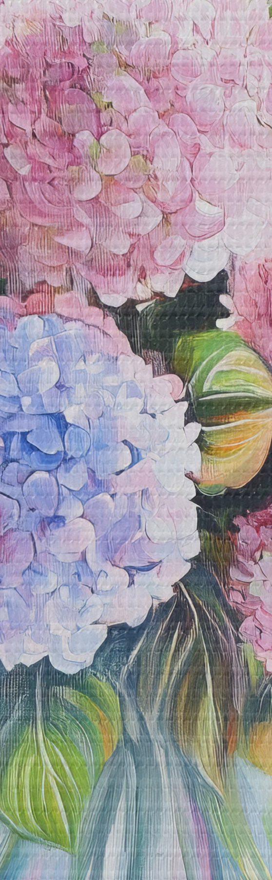 Selle lõuendi peenike niidipunus meenutab professionaalse kunstniku lõuendi pinda.