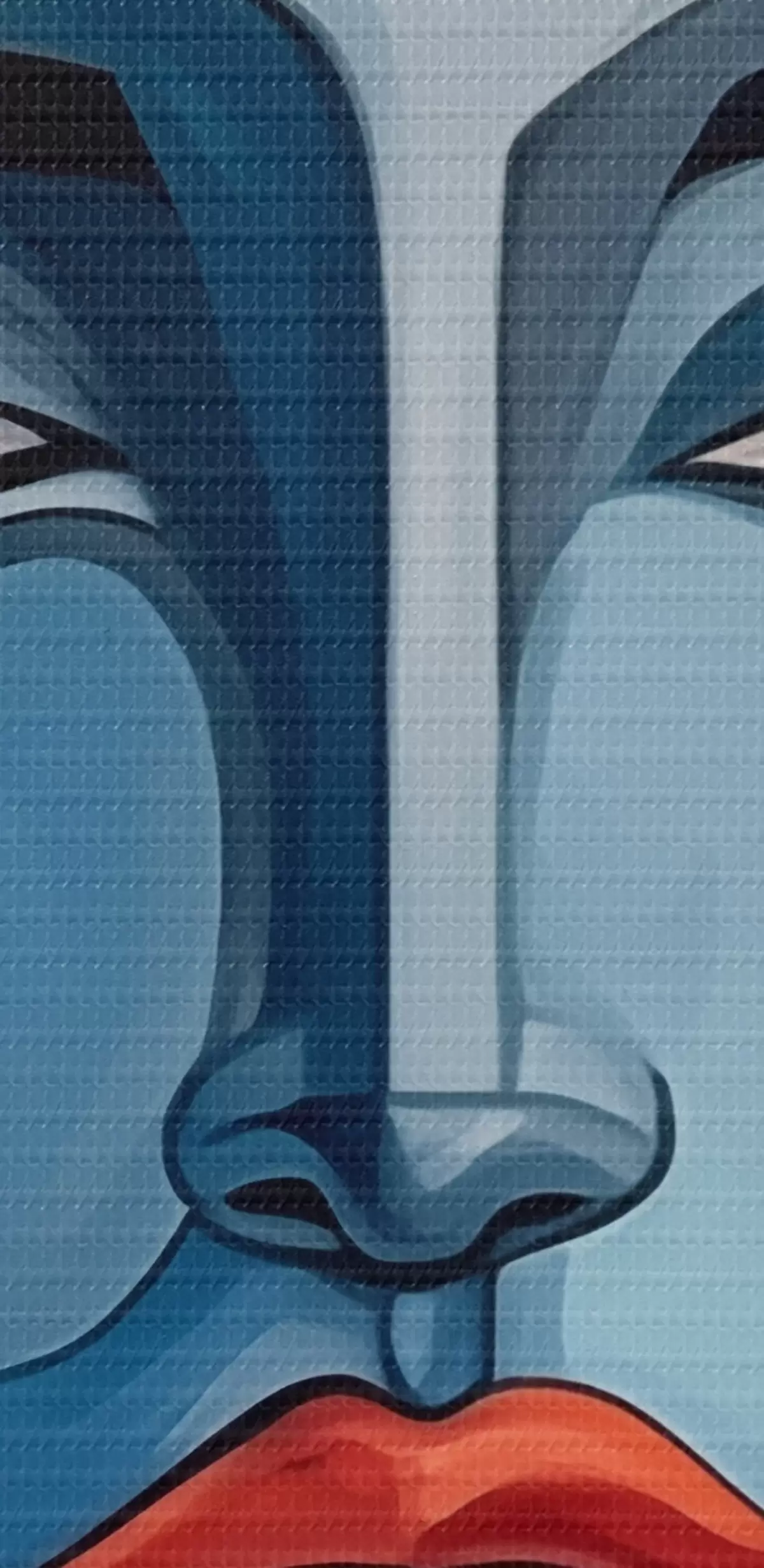 Selle lõuendi peenike niidipunus meenutab professionaalse kunstniku lõuendi pinda.