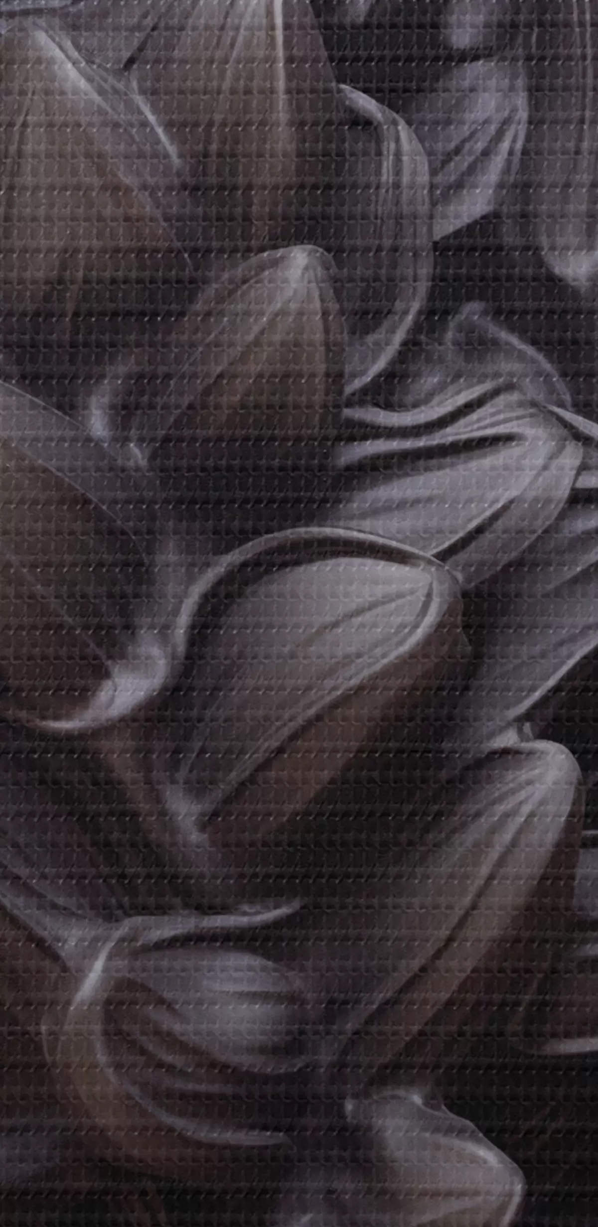 Selle lõuendi peenike niidipunus meenutab professionaalse kunstniku lõuendi pinda.