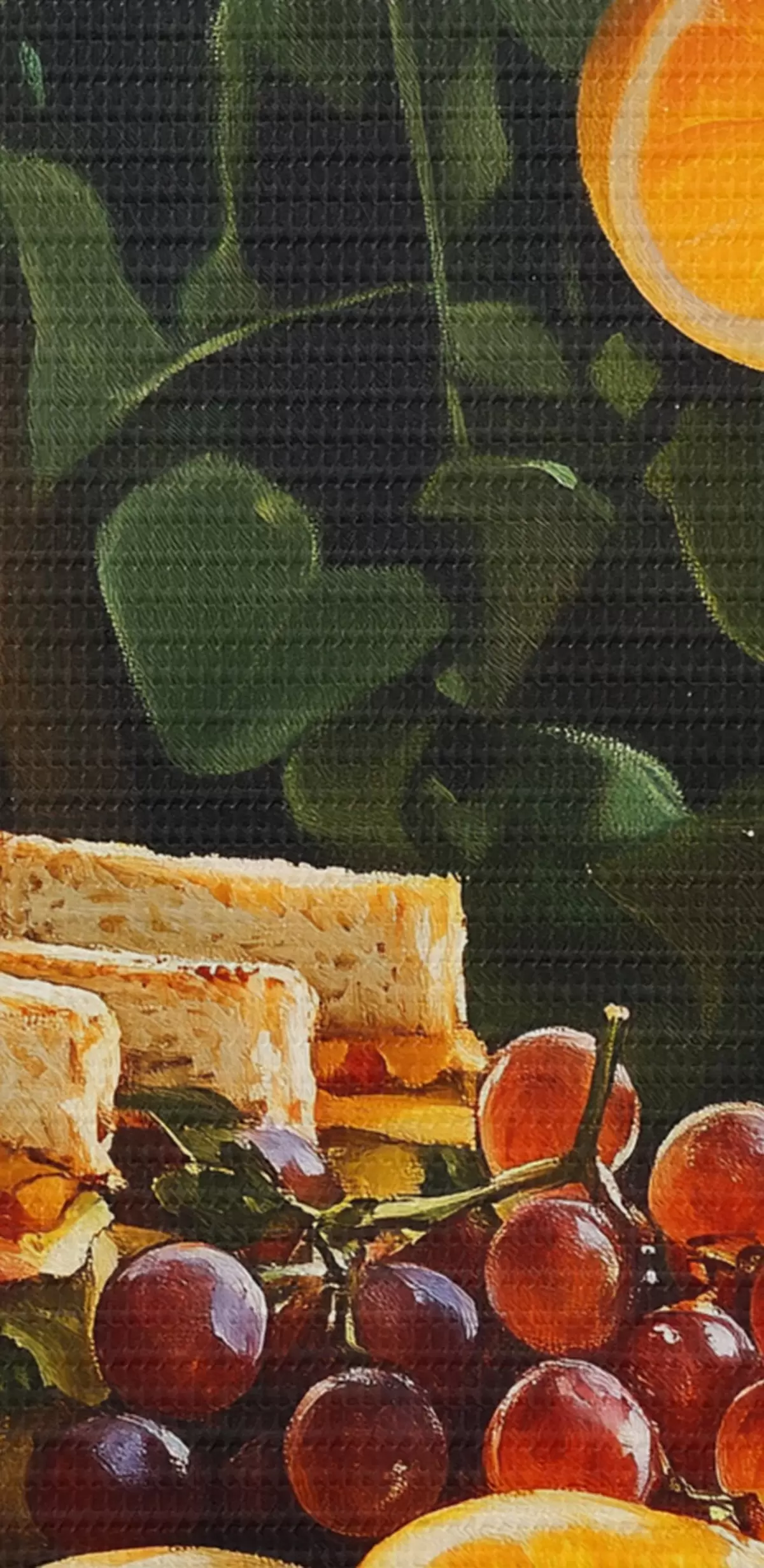 Selle lõuendi peenike niidipunus meenutab professionaalse kunstniku lõuendi pinda.