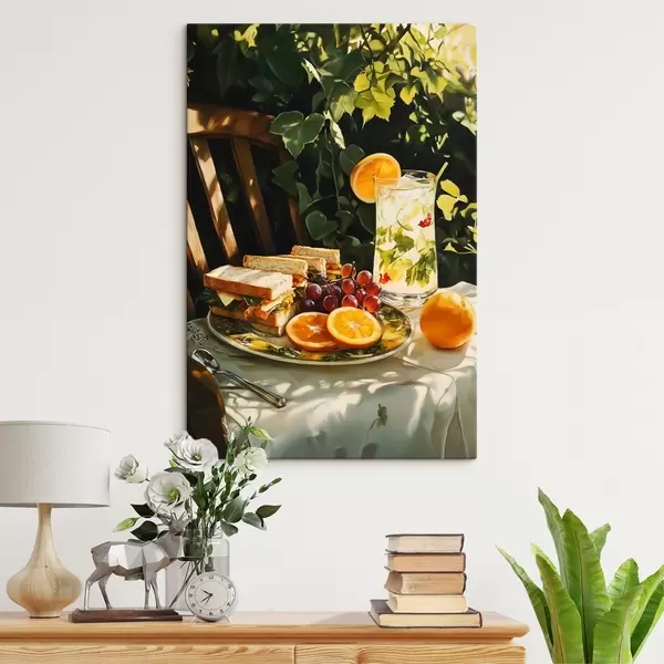 Maalid Esteetiline piknik suveaias, võileivad, apelsinid, limonaad Nr s44306
