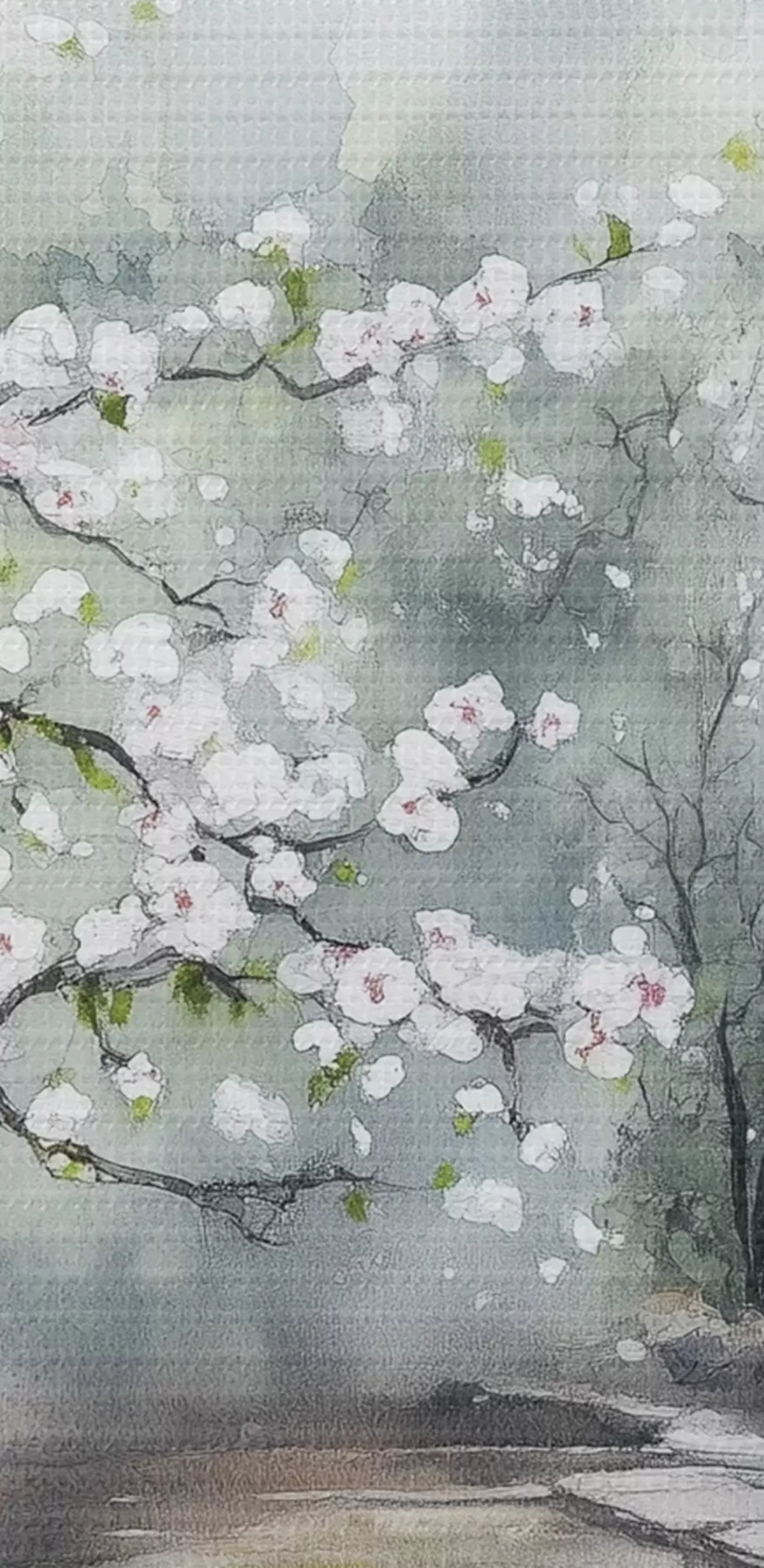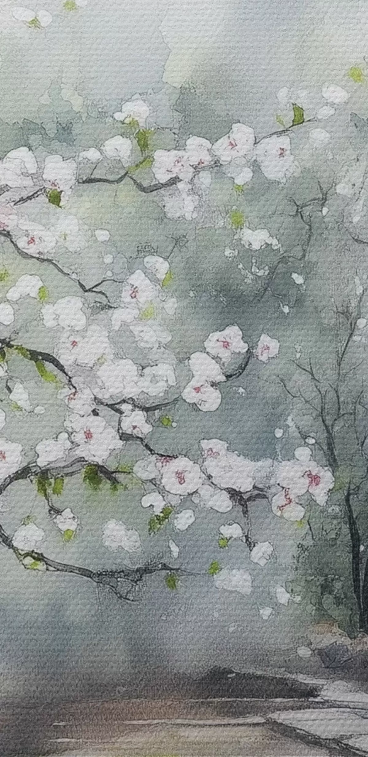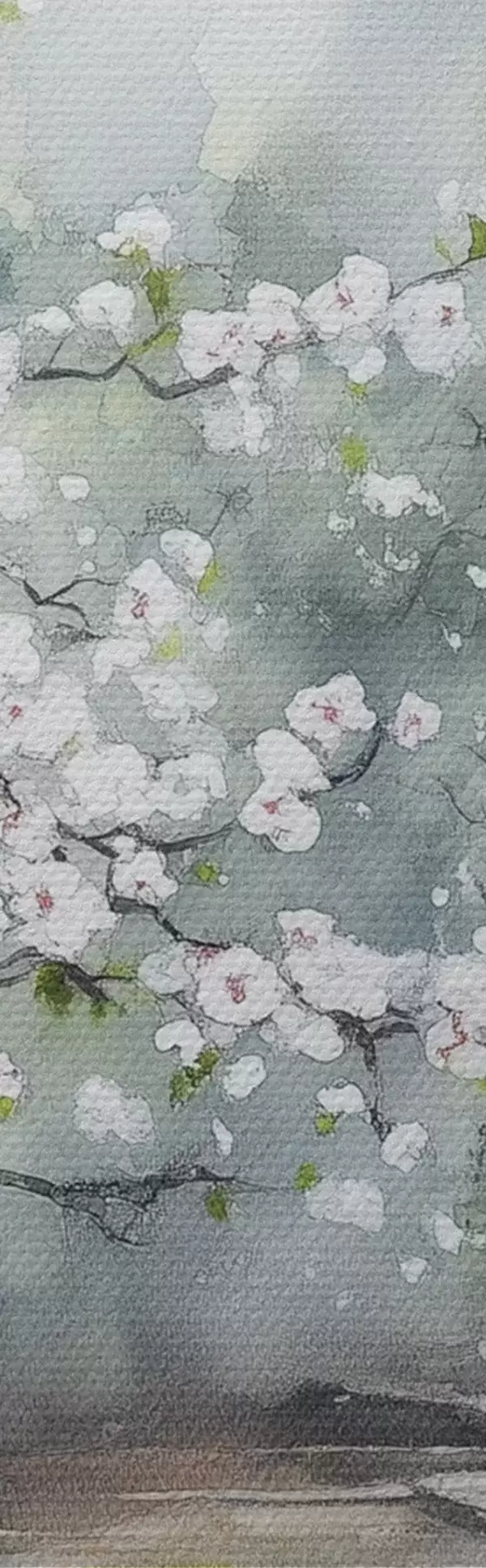 Maalid Jaapani aed kirsipuu ja majaga, idamaine, akvarellstiilis Nr s44309
