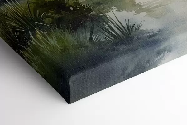 Maalid Idamaine mets koos kivide, tiigi ja mändidega, rohelus, akvarellstiilis Nr s44311