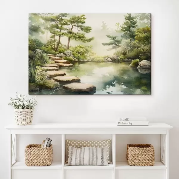 Maalid Idamaine aed koos järve ja puudega, loodus, akvarellstiilis Nr s44313