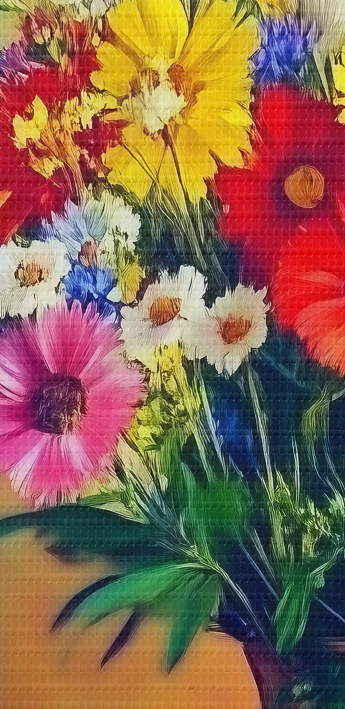 Selle lõuendi peenike niidipunus meenutab professionaalse kunstniku lõuendi pinda.