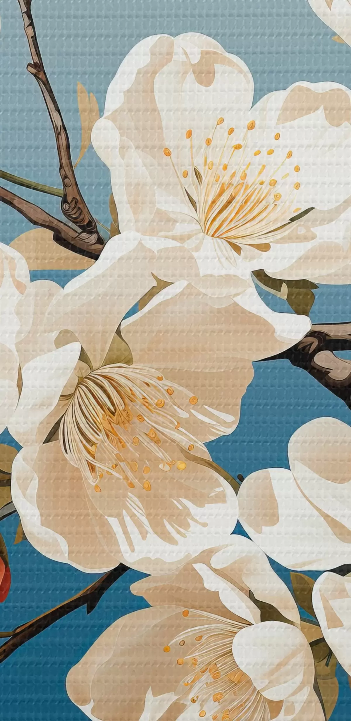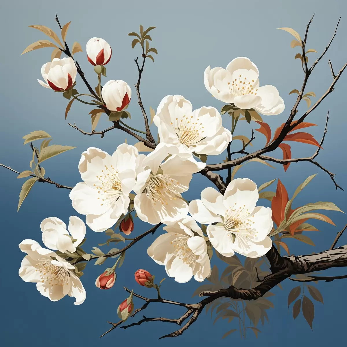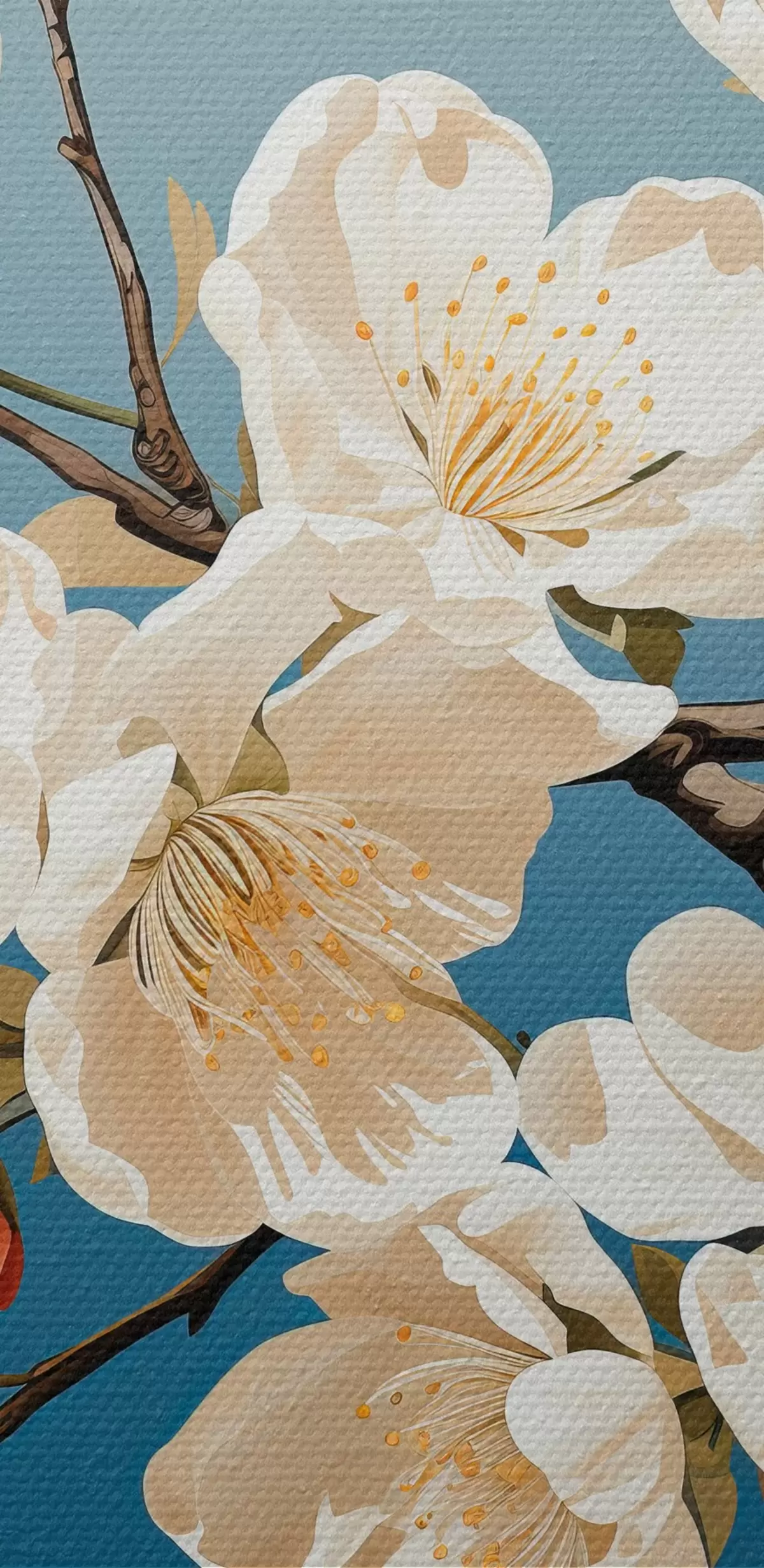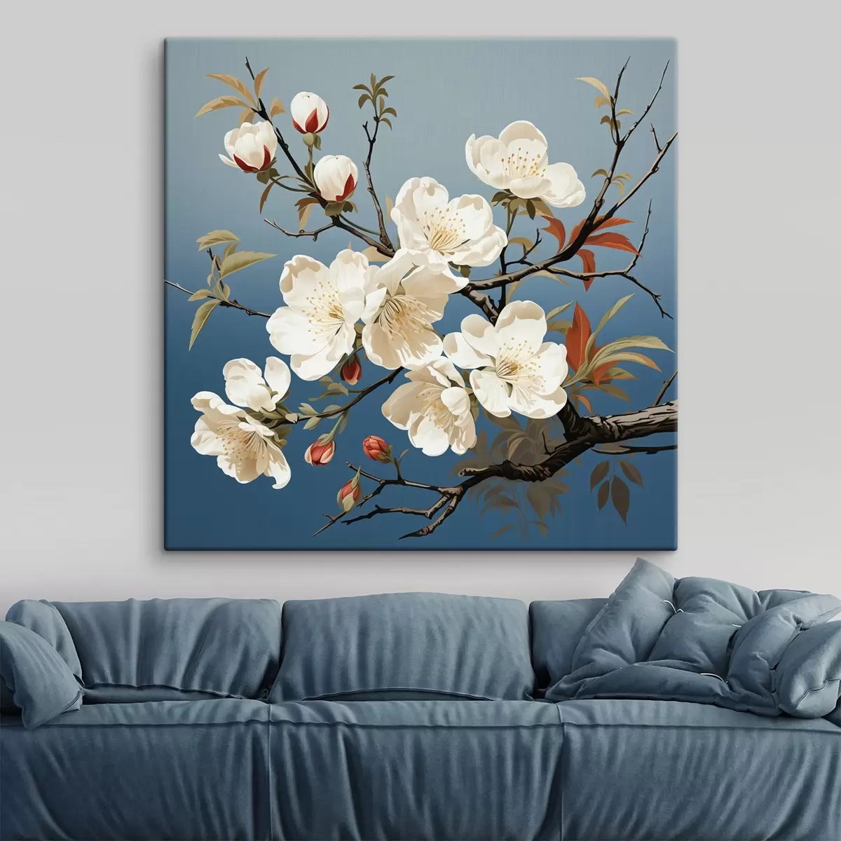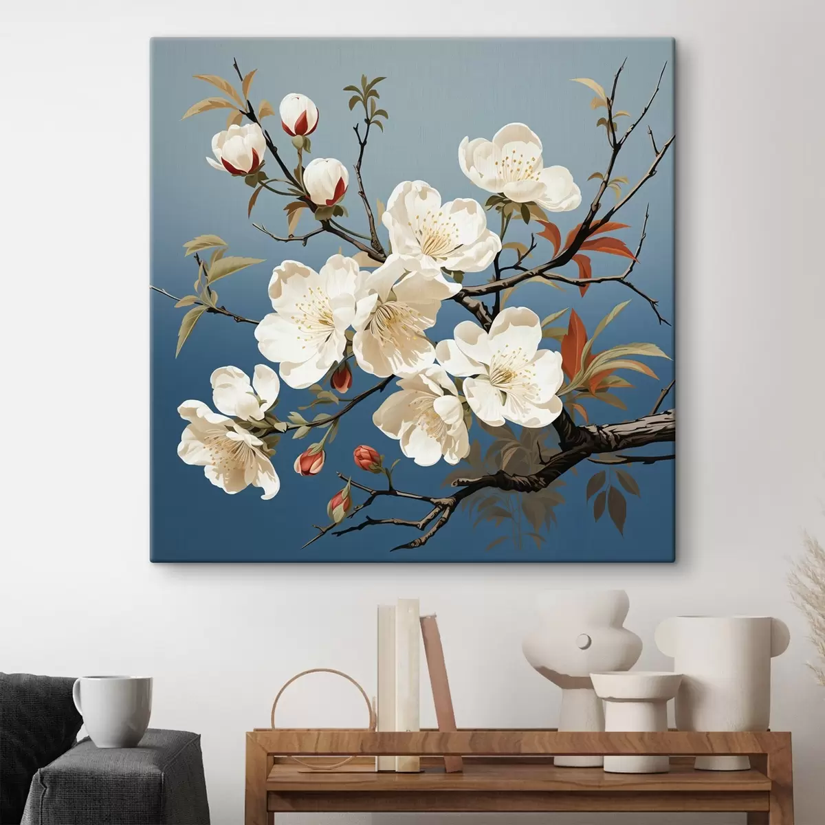 Maalid Magnoolia oksa punakaid pungi sinisel taustal Nr s44341