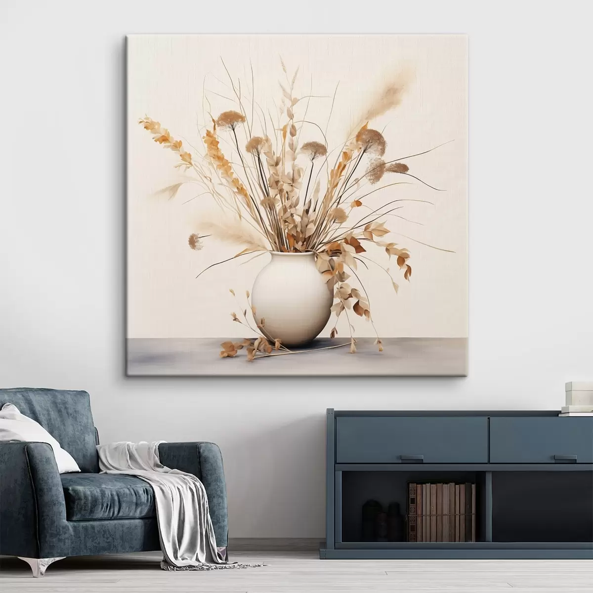 Maalid Kuivatatud rohu ja lillede komplekt valges vaasis Nr s44348
