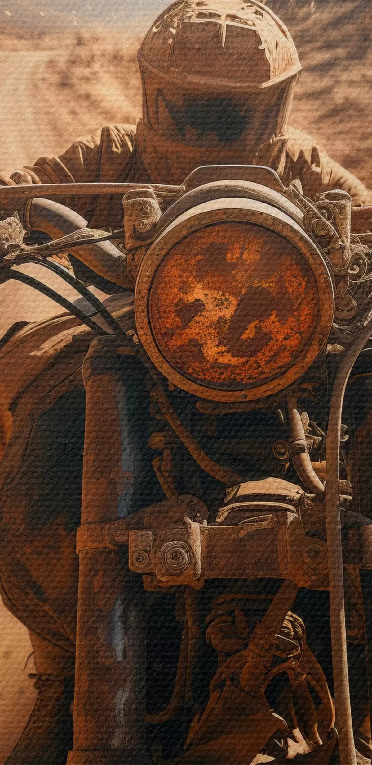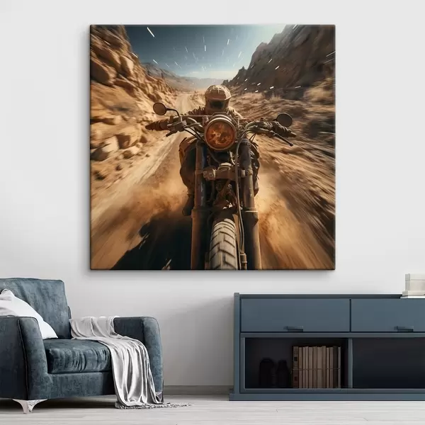 Maalid Mootorrattur kiirustab mööda kõrbeteed Nr s44361