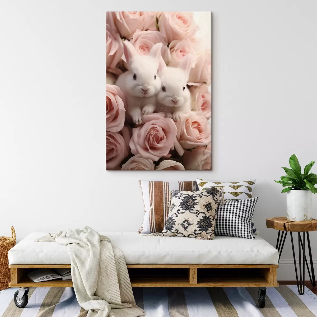 Maalid Kaks valget küülikut õrnade roosililledega Nr s44380