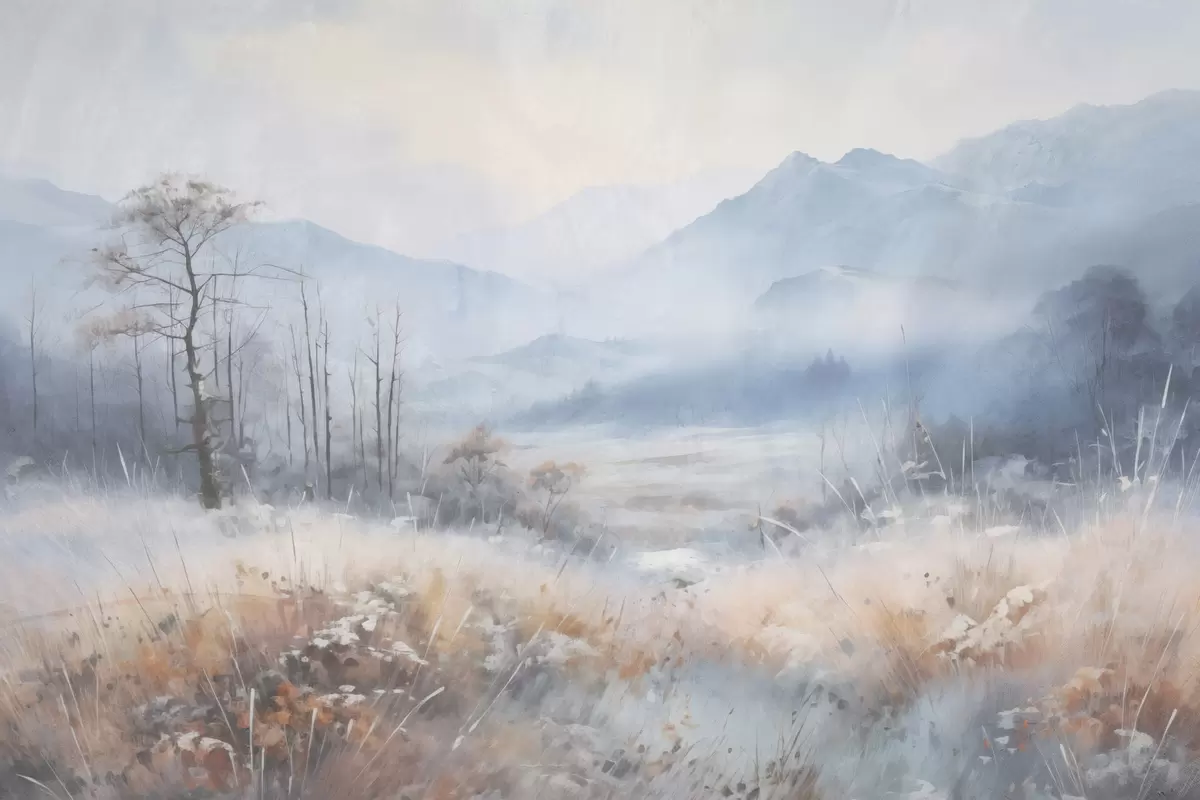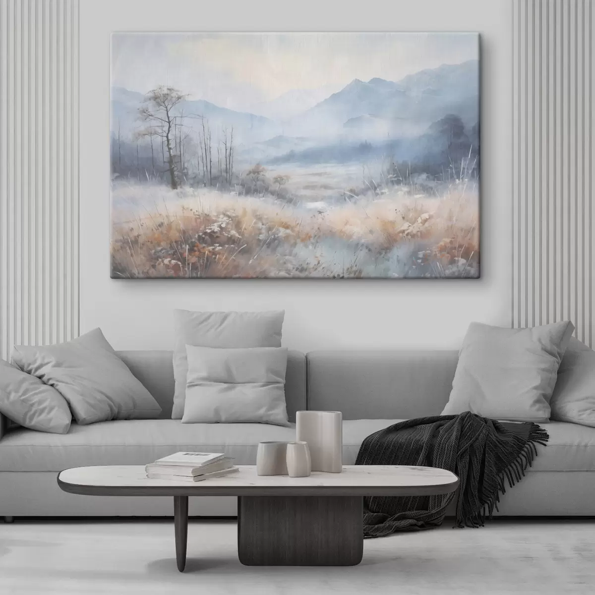 Maalid Tekstuurne maastik koos mägede, kuiva rohu ja metsaga, summutatud värvid Nr s44402