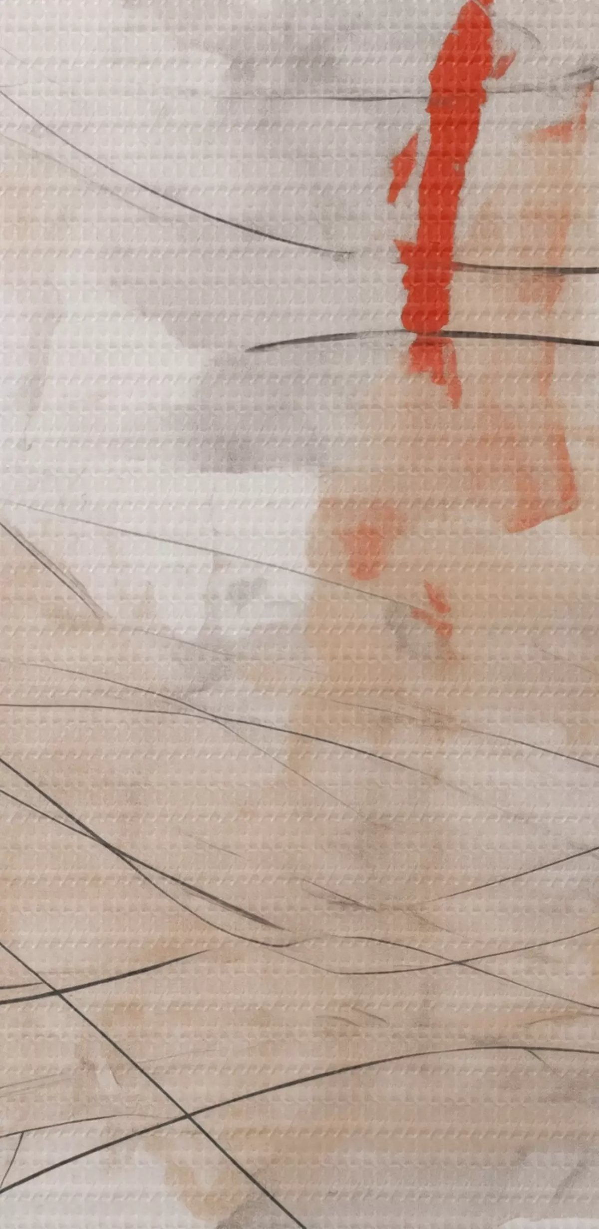 Selle lõuendi peenike niidipunus meenutab professionaalse kunstniku lõuendi pinda.
