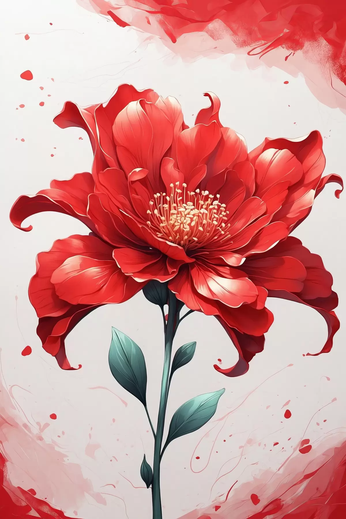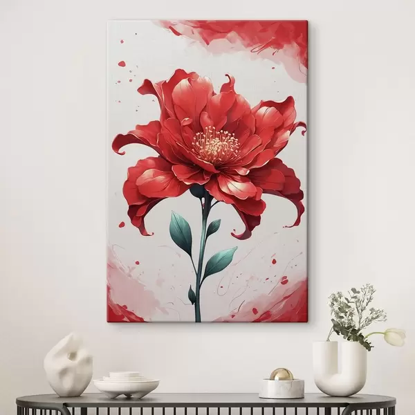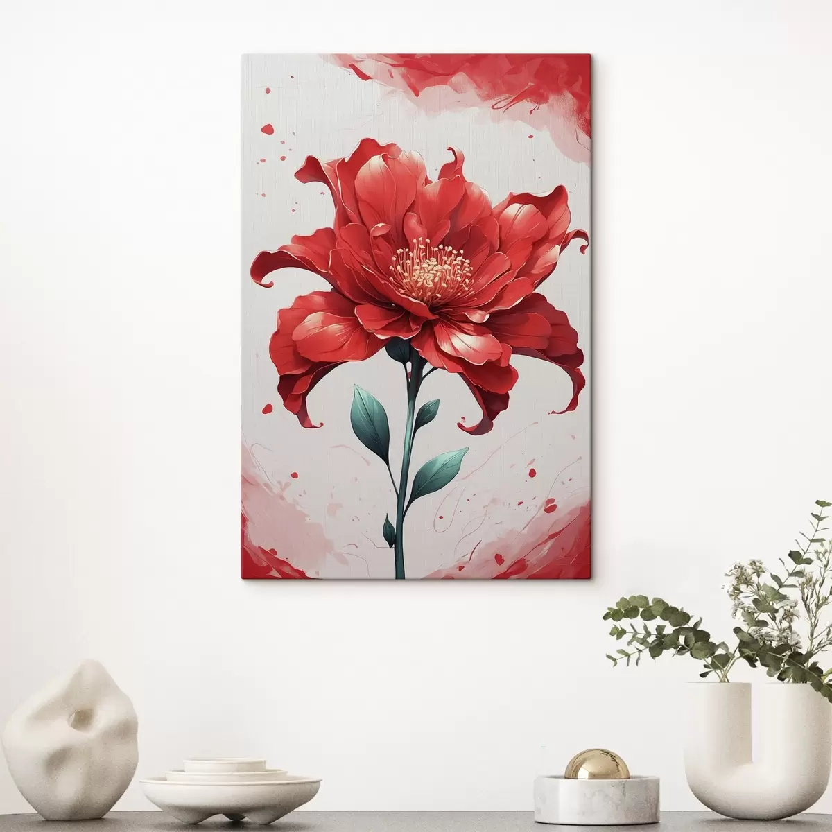 Maalid Punane lill valge-punasel taustal Nr s44442