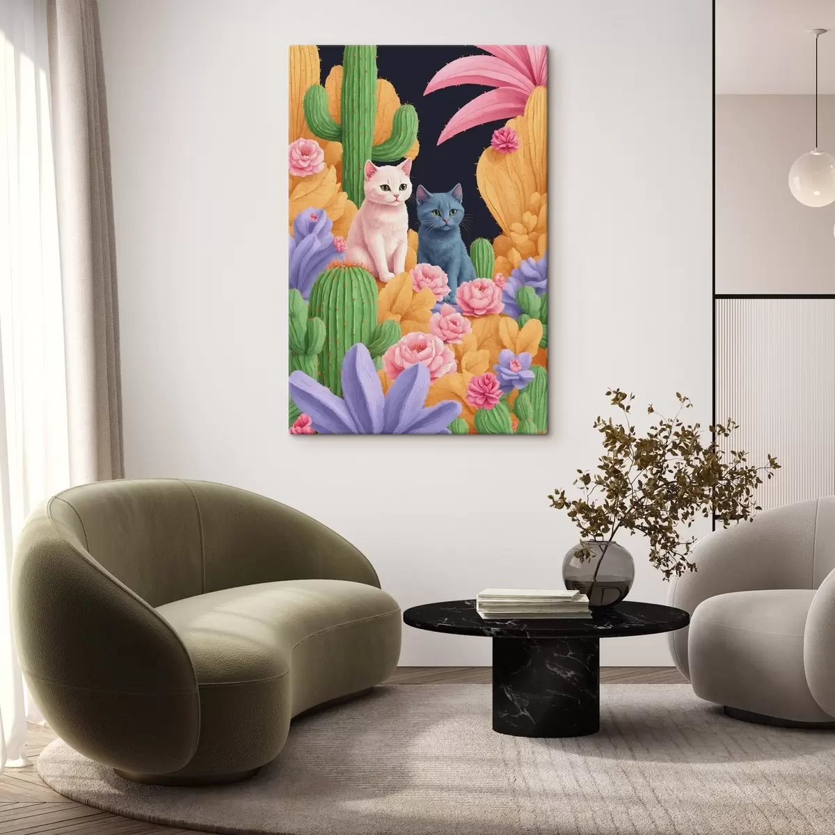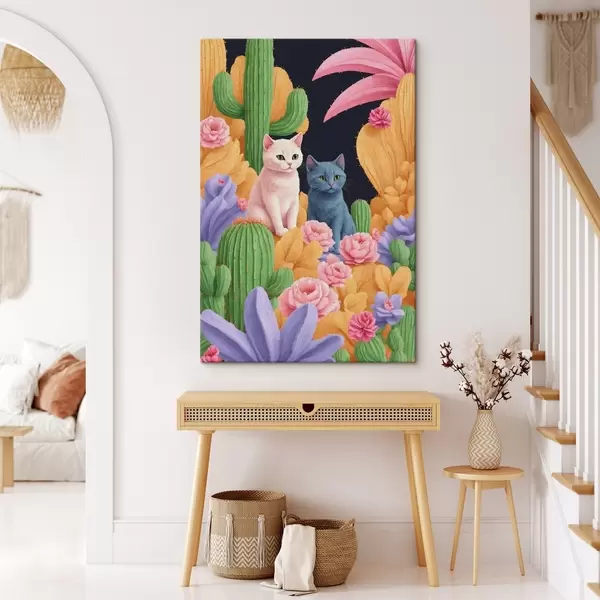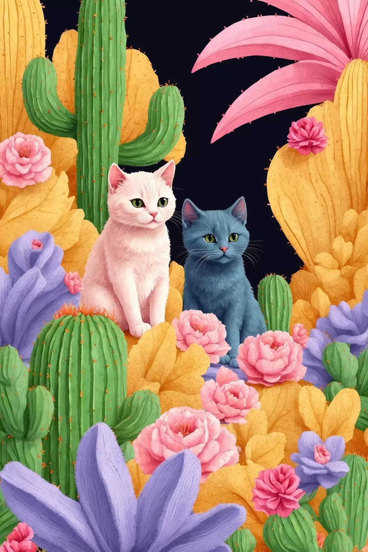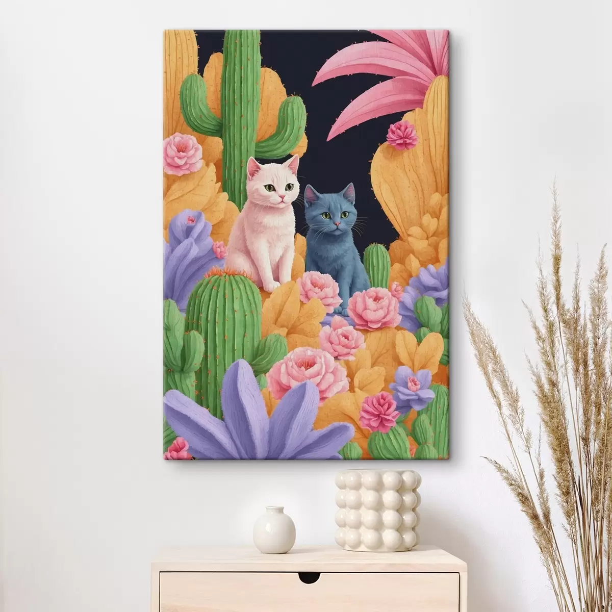 Maalid Kunstlikud kassid lillede ja kaktuste vahel Nr s44452