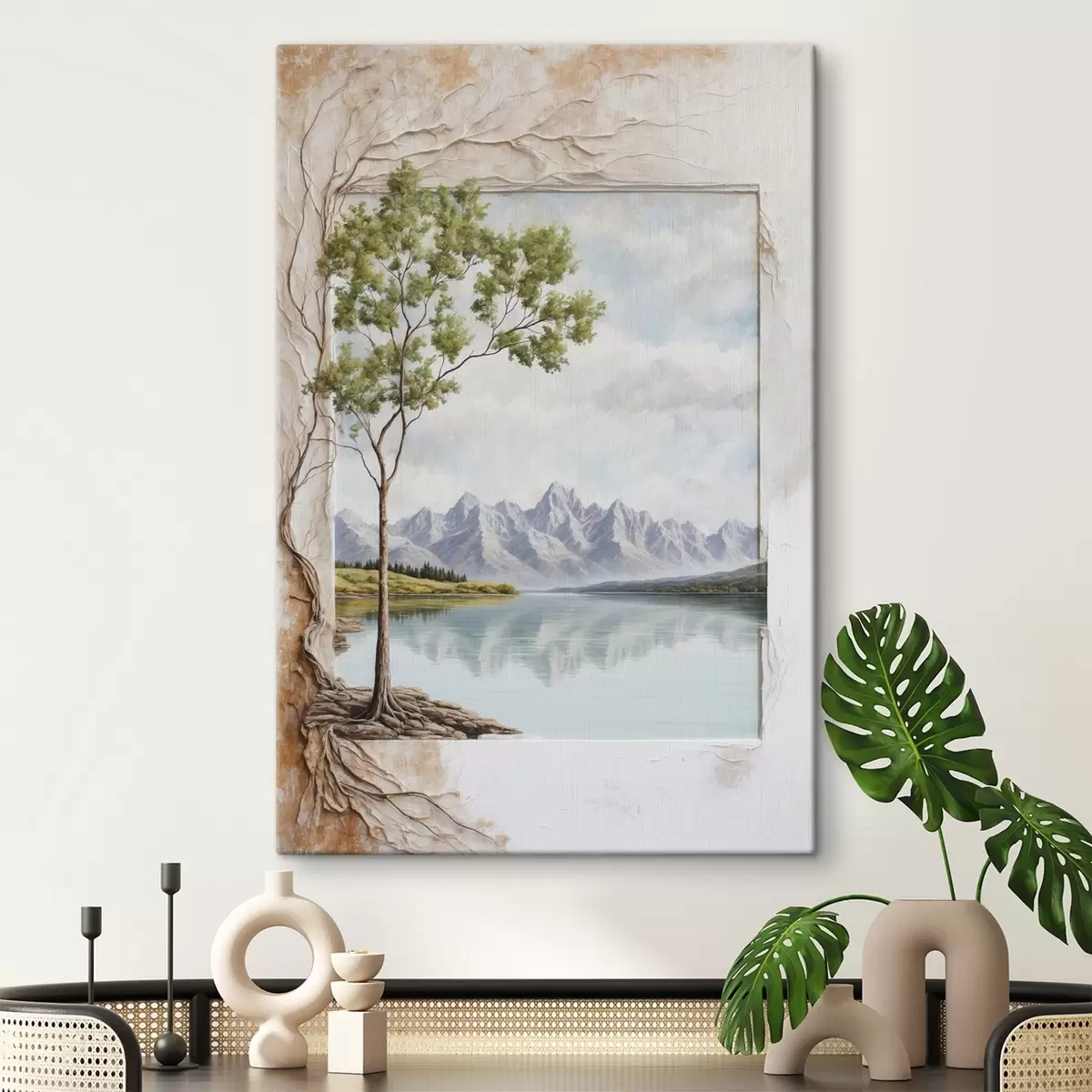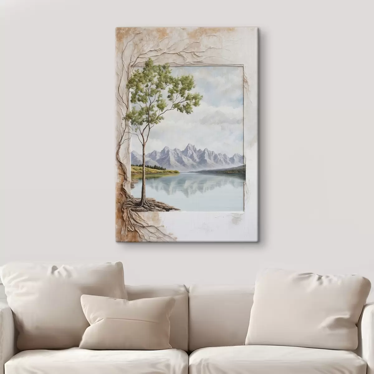 Maalid Vaade järvele ja lumised mäed kaadris Nr s44458