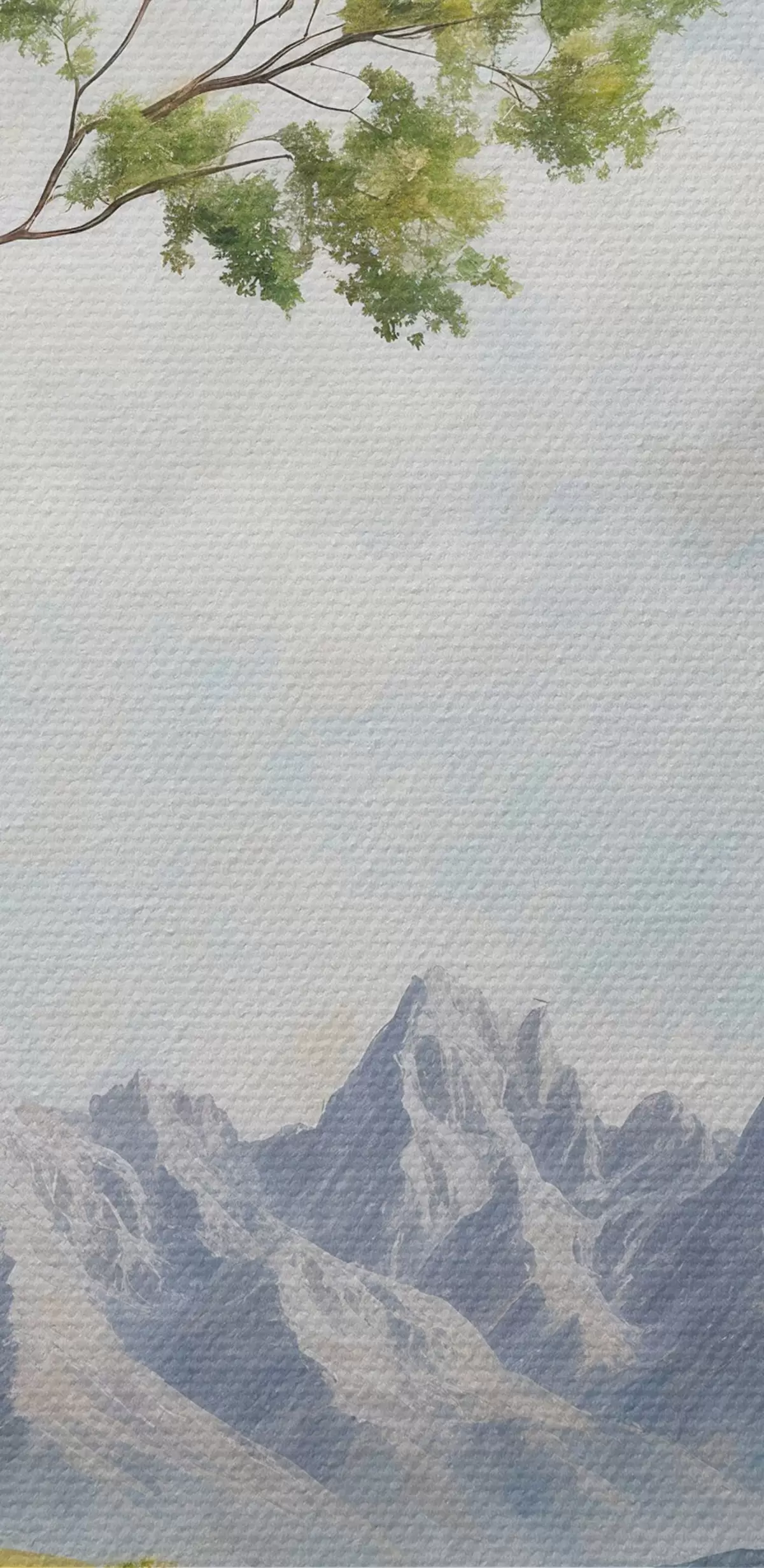 Maalid Vaade järvele ja lumised mäed kaadris Nr s44458