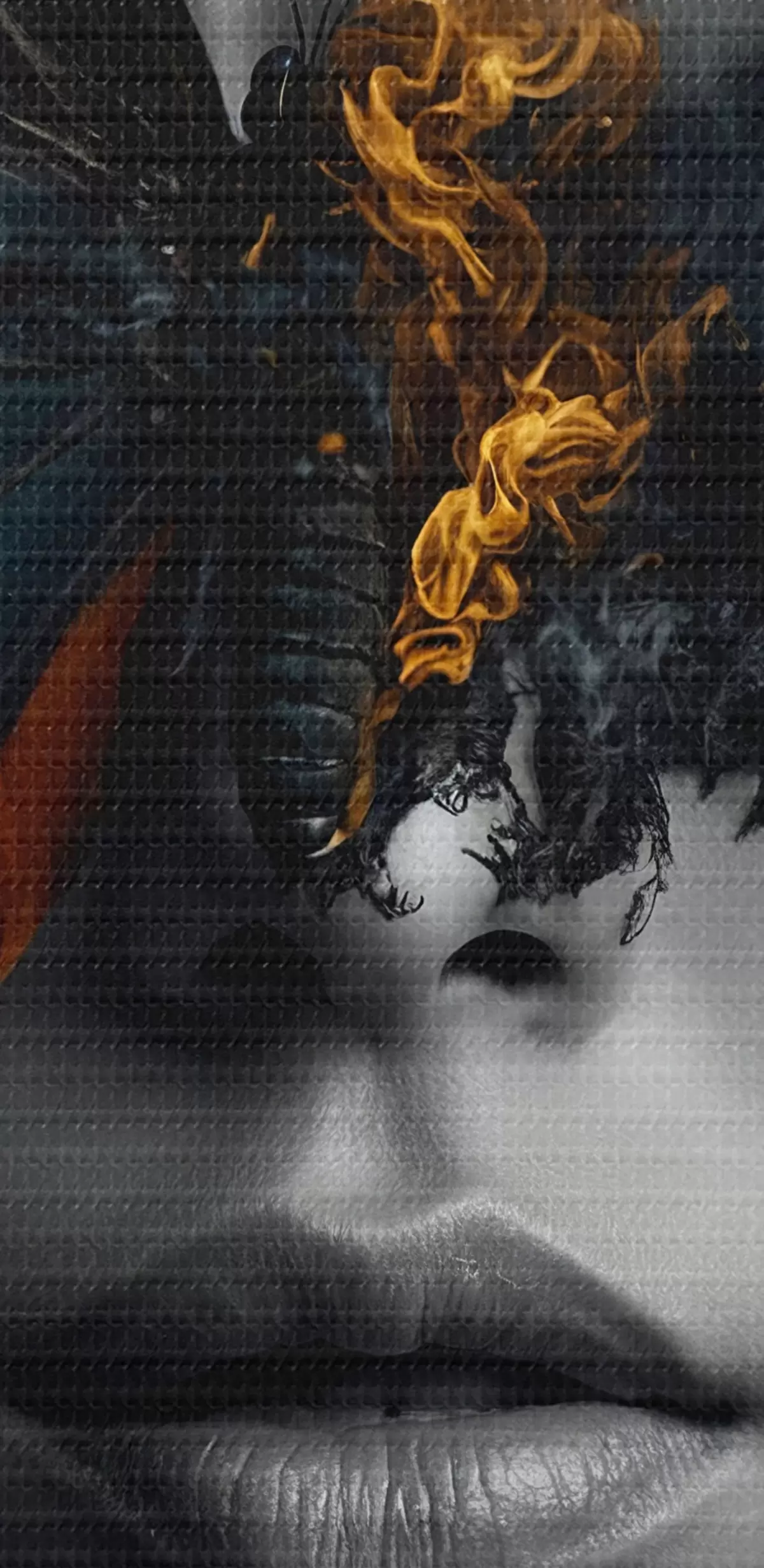 Selle lõuendi peenike niidipunus meenutab professionaalse kunstniku lõuendi pinda.