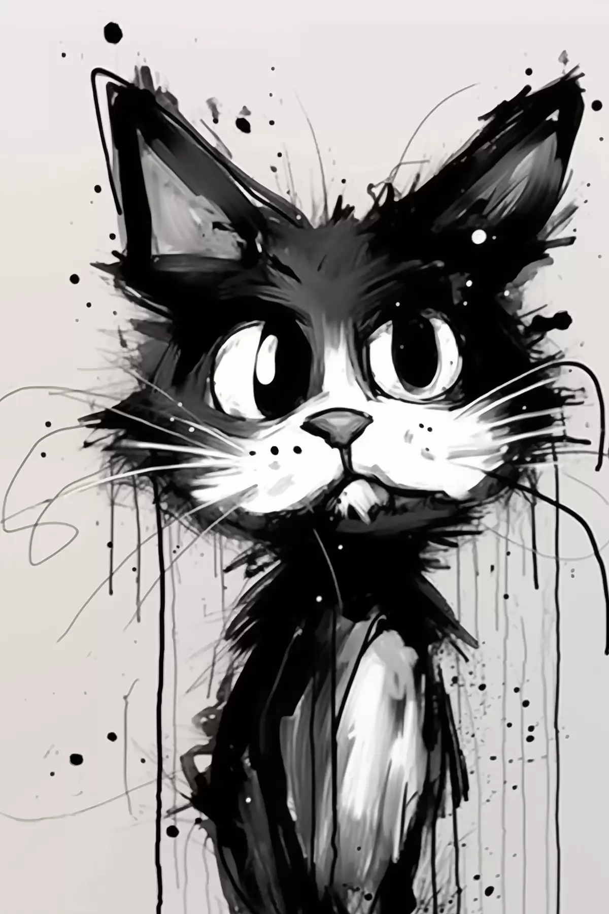 Maalid Kass visandlikus stiilis koos värvipritsmetega Nr s44483