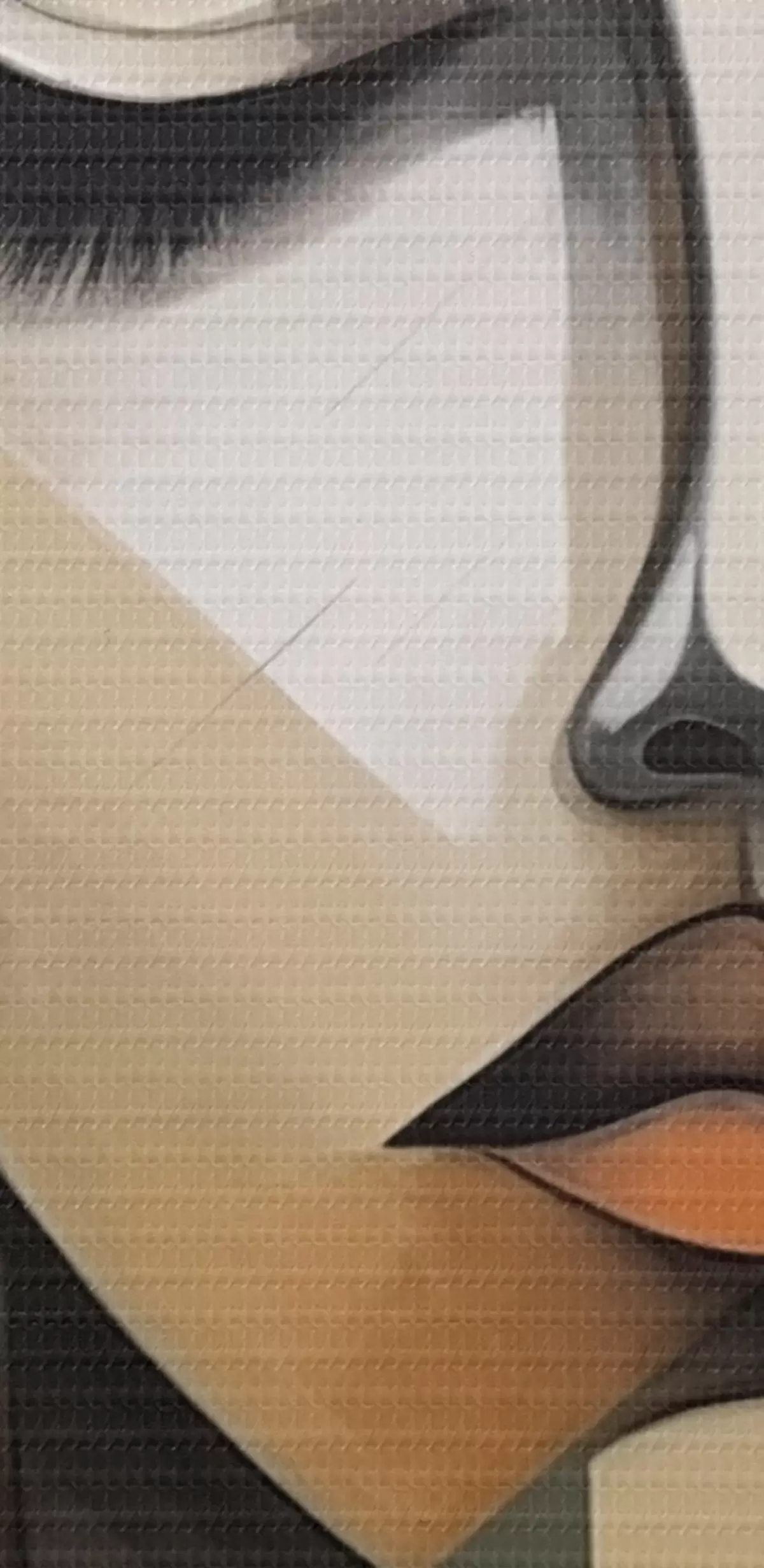 Selle lõuendi peenike niidipunus meenutab professionaalse kunstniku lõuendi pinda.