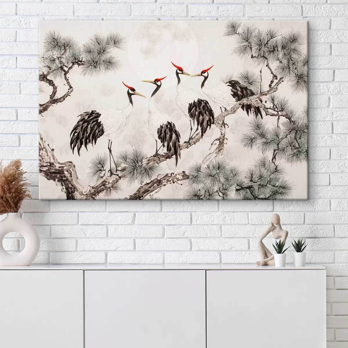 Maalid Hiina kunst koos kraanade ja männipuudega, idamaine stiil, loodus Nr s44503