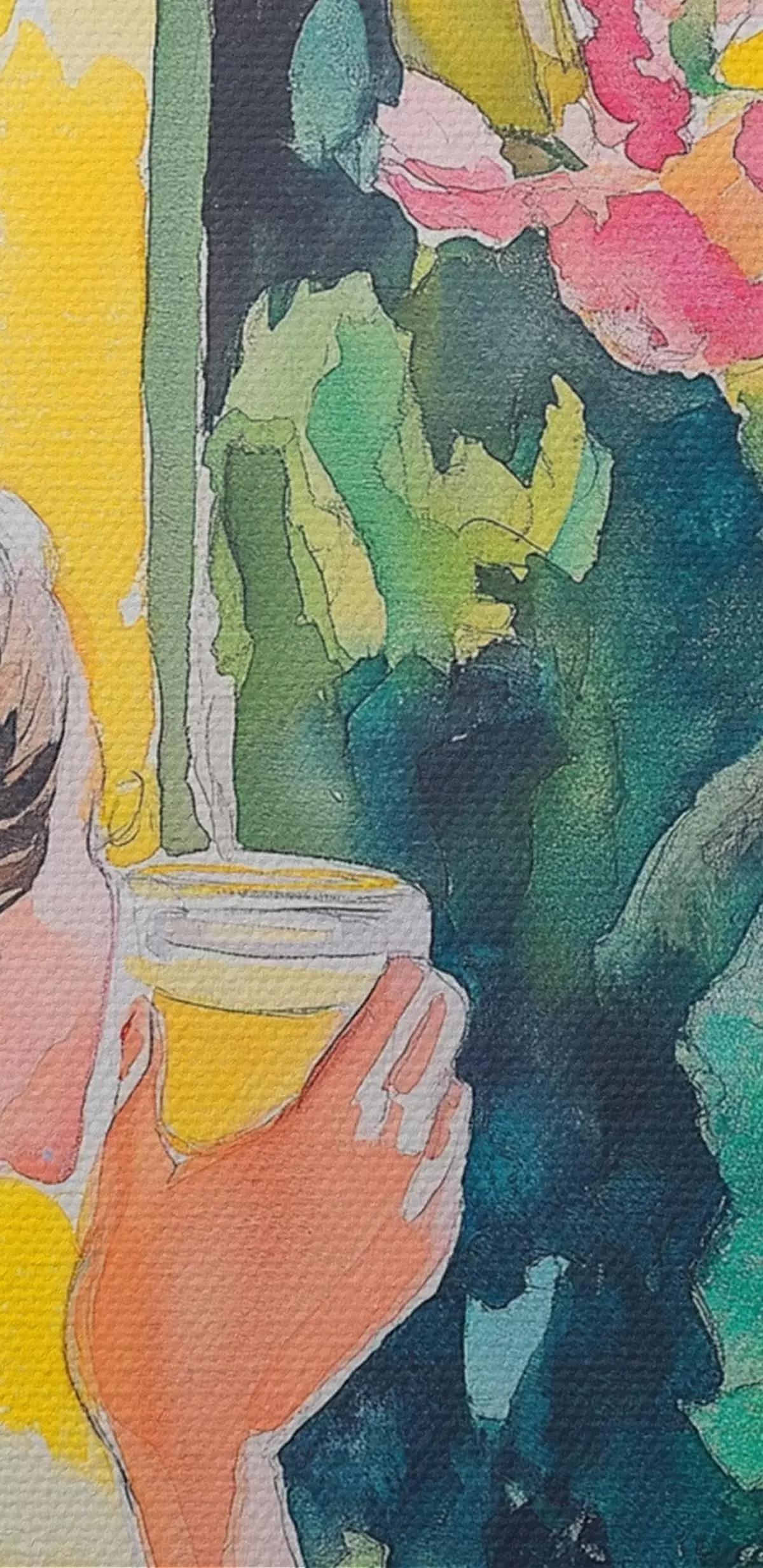 Maalid Suvine vibes, tüdruk kohvikus, limoncello, Itaalia, akvarellstiil Nr s44505