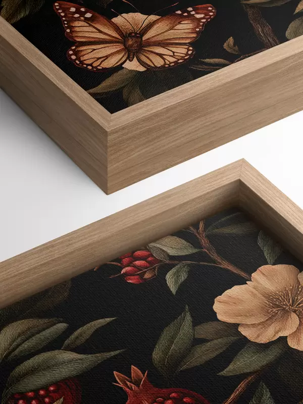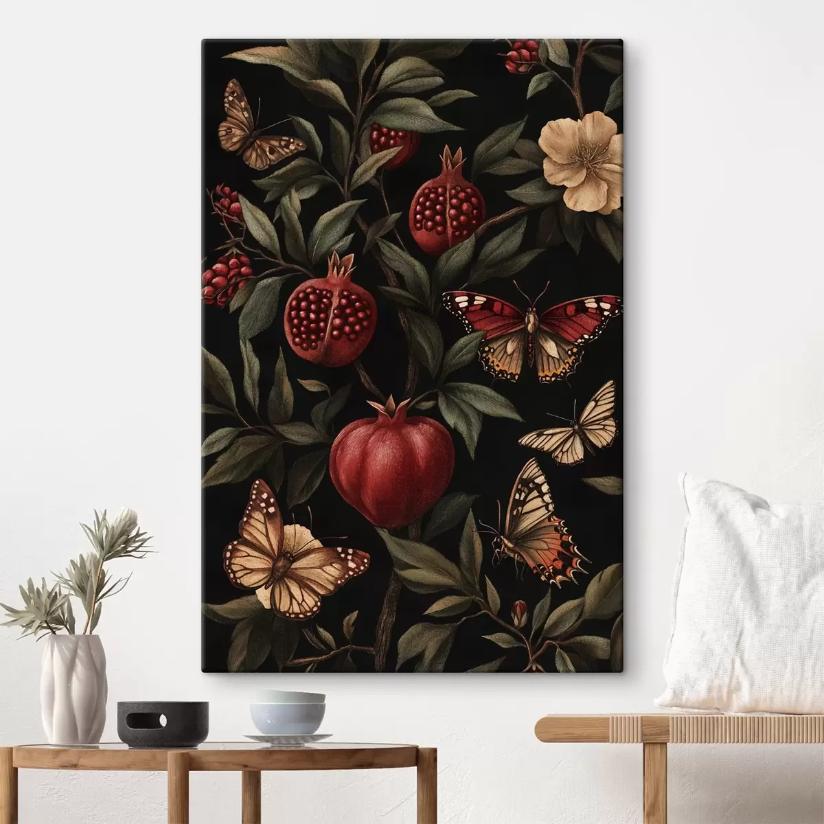 Maalid Botaaniline kunst granaatõunte ja liblikatega Nr s44511