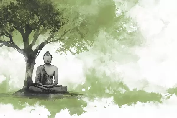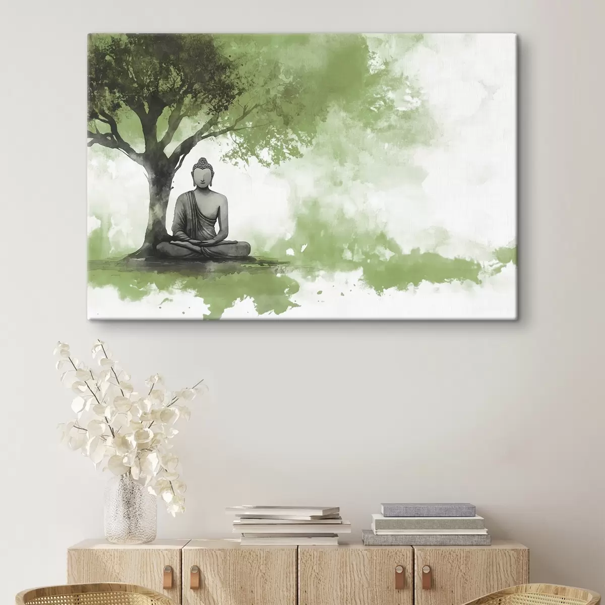 Pilt Buddha istub puu all, meditatsioon, vaimsed, rohelised värvid s44512v1