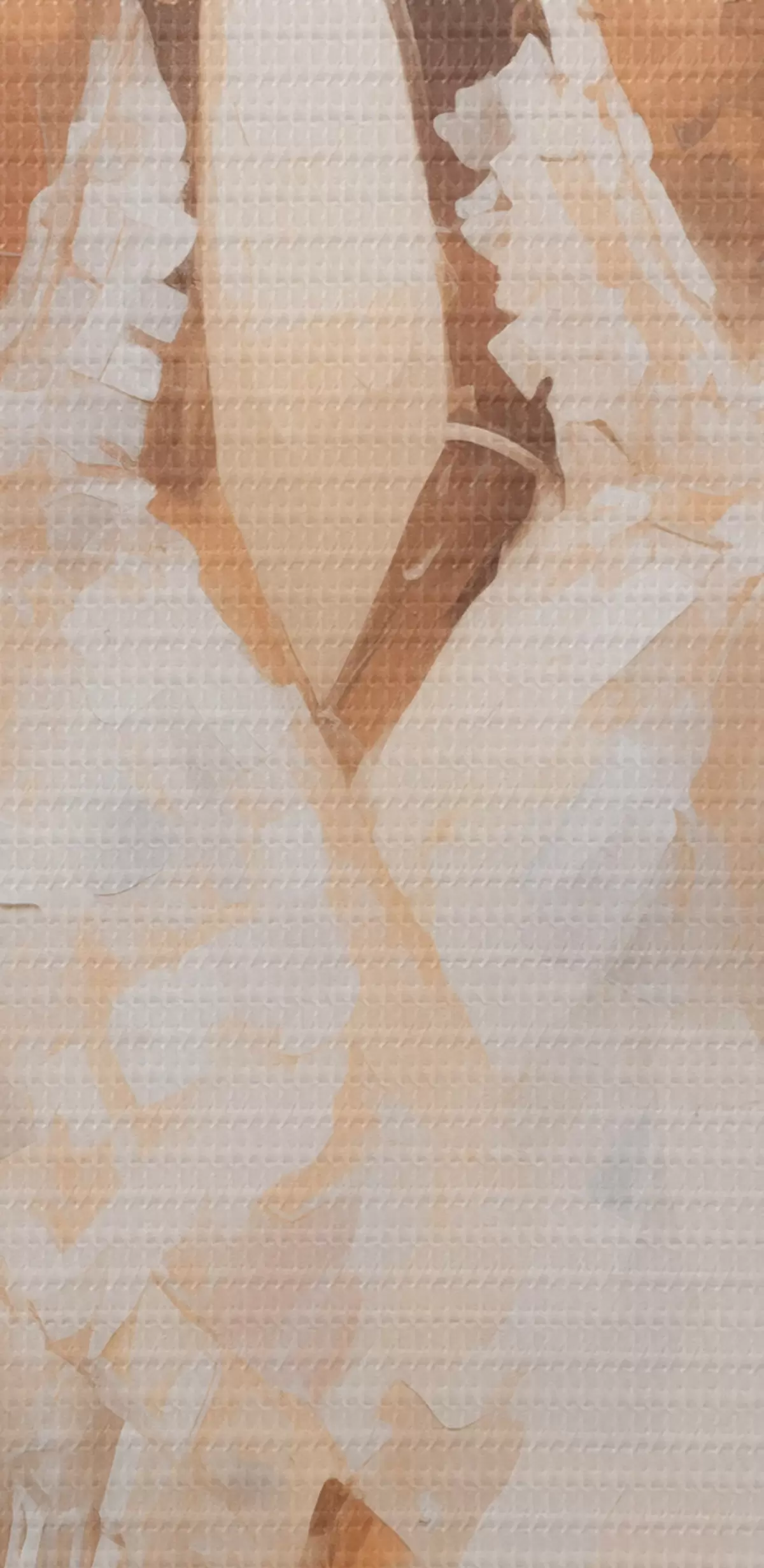 Selle lõuendi peenike niidipunus meenutab professionaalse kunstniku lõuendi pinda.