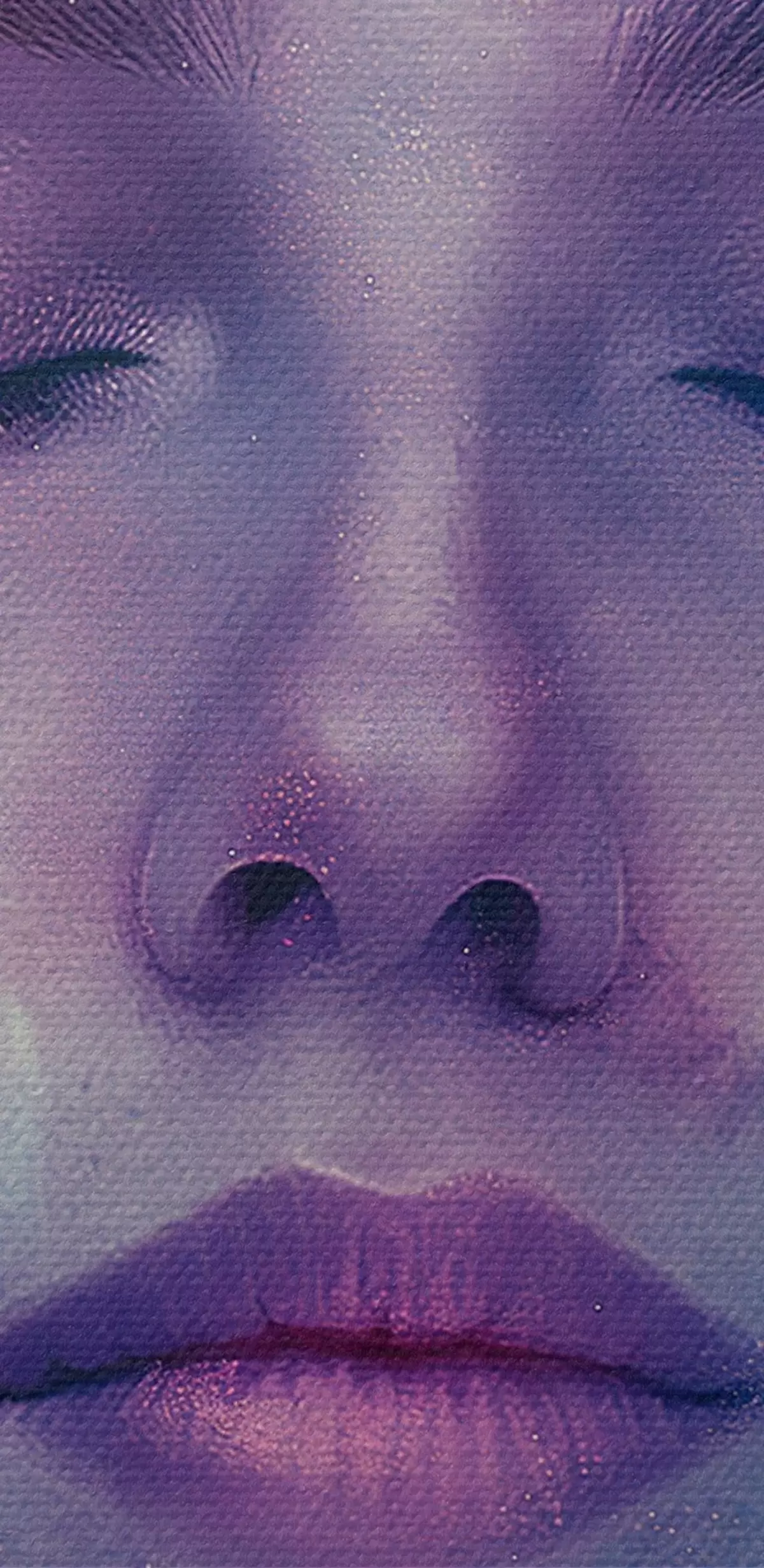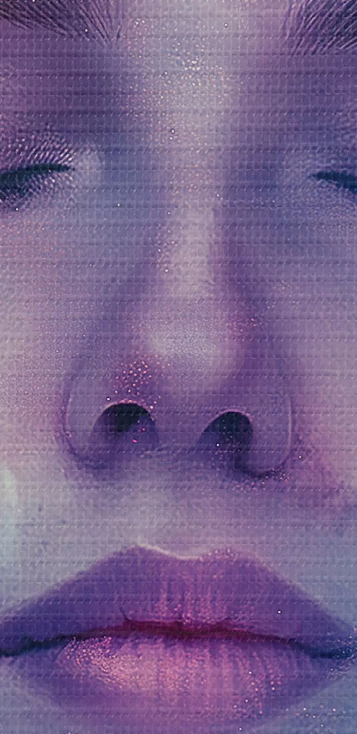Selle lõuendi peenike niidipunus meenutab professionaalse kunstniku lõuendi pinda.