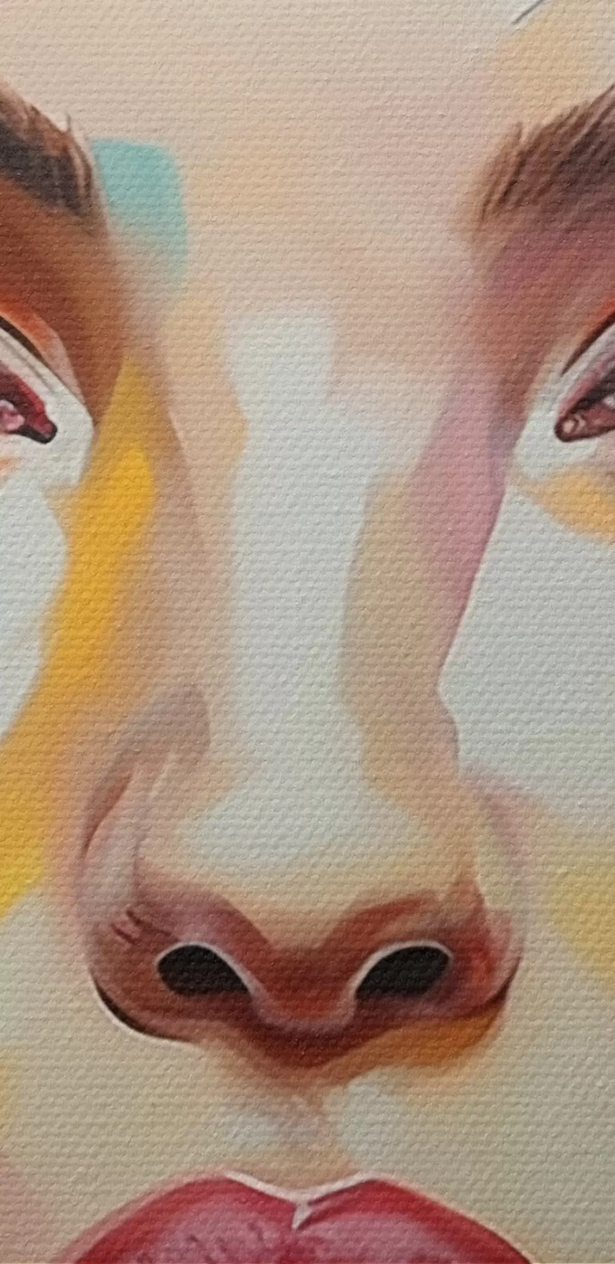 Selle lõuendi peenike niidipunus meenutab professionaalse kunstniku lõuendi pinda.