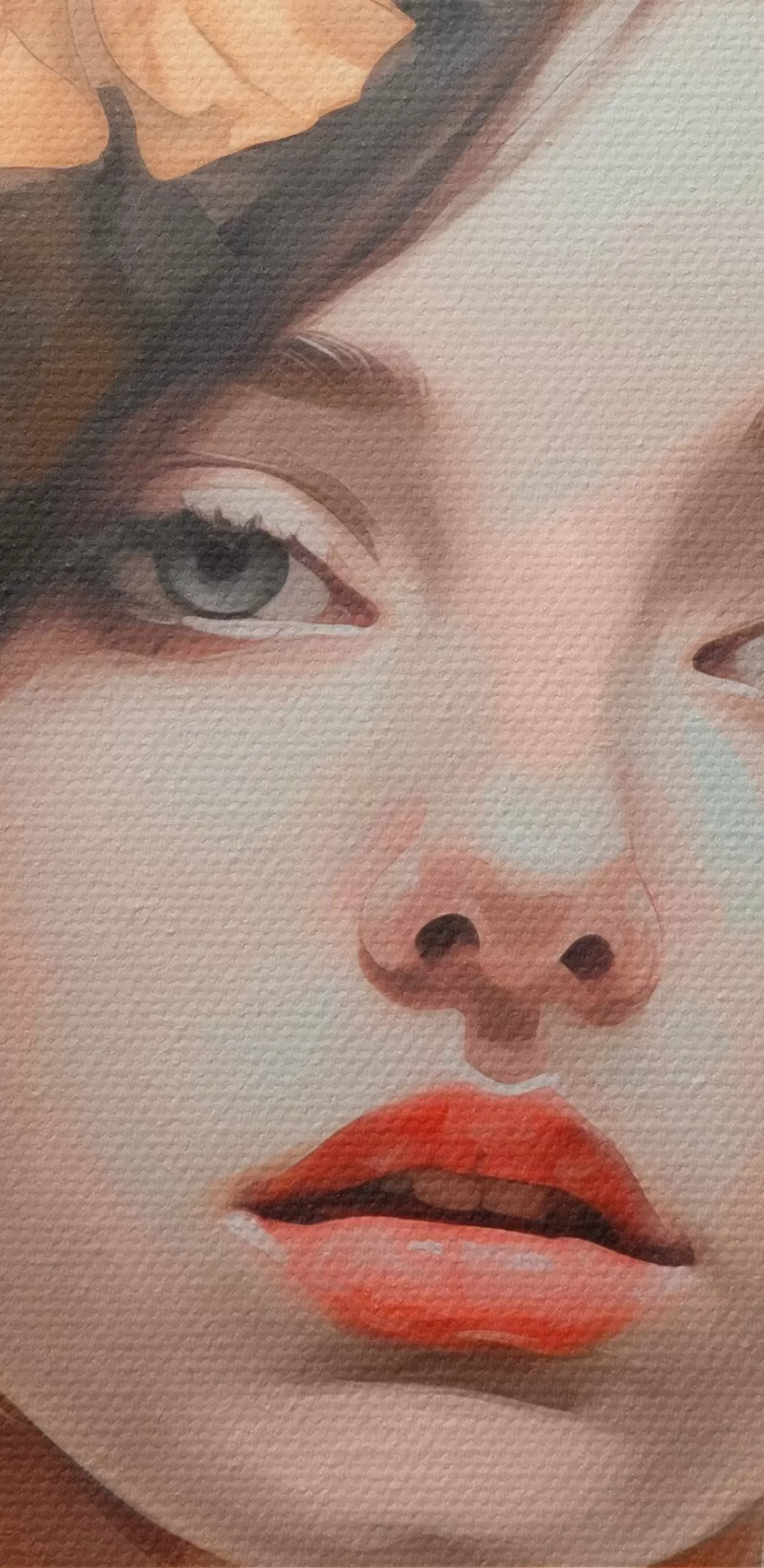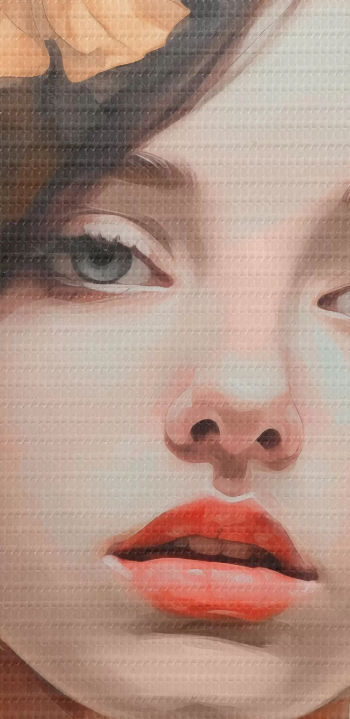 Selle lõuendi peenike niidipunus meenutab professionaalse kunstniku lõuendi pinda.