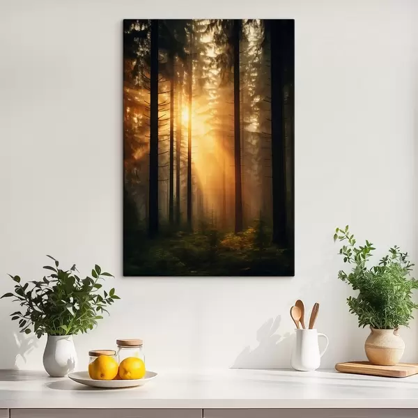 Maalid Tihe männimets koos päikeseloojangu valgusega, realism, loodus Nr s44615