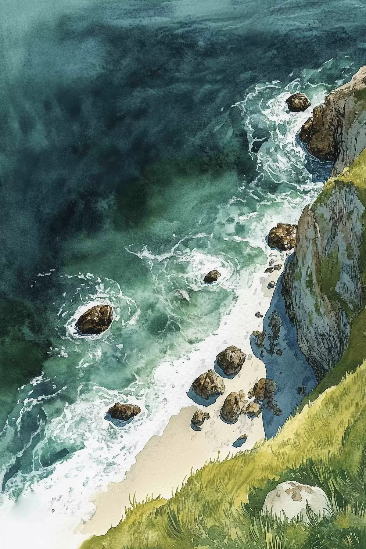 Maalid Akvamariine vesi, ookean, kaljused kaljud, Portugal Nr s44617