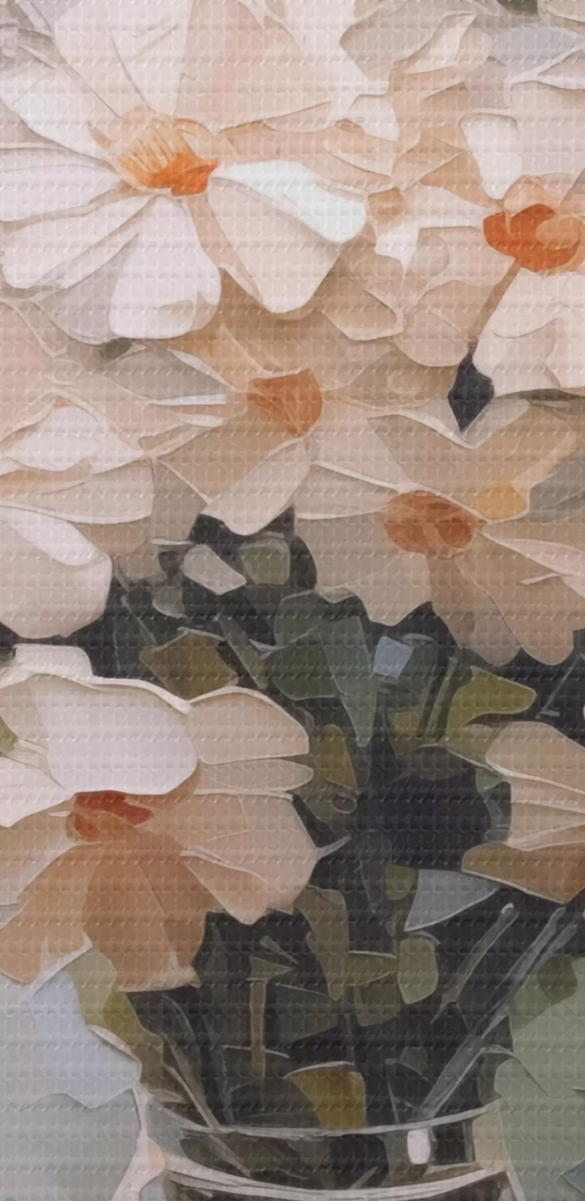 Selle lõuendi peenike niidipunus meenutab professionaalse kunstniku lõuendi pinda.