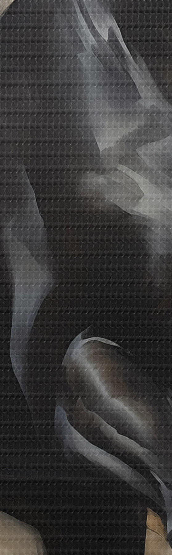 Selle lõuendi peenike niidipunus meenutab professionaalse kunstniku lõuendi pinda.