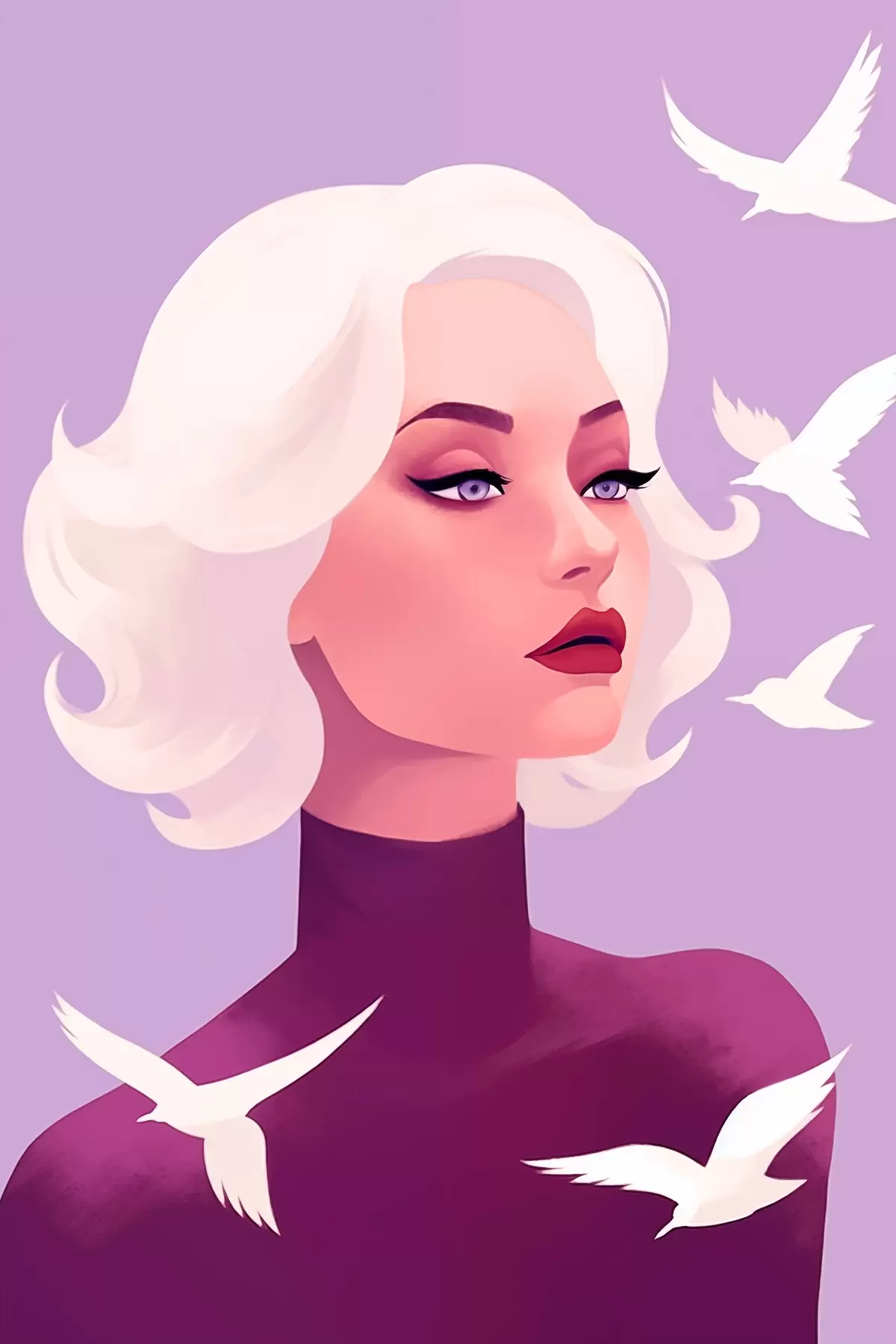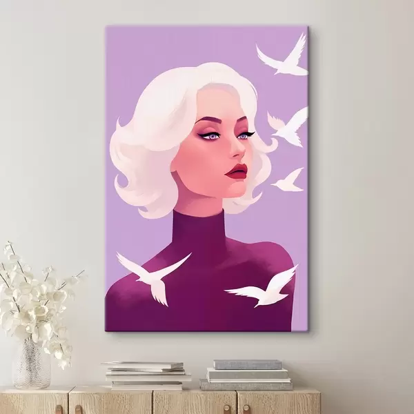 Maalid Naise portree valgete juustega lindudega taustal Nr s44681