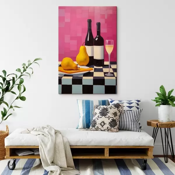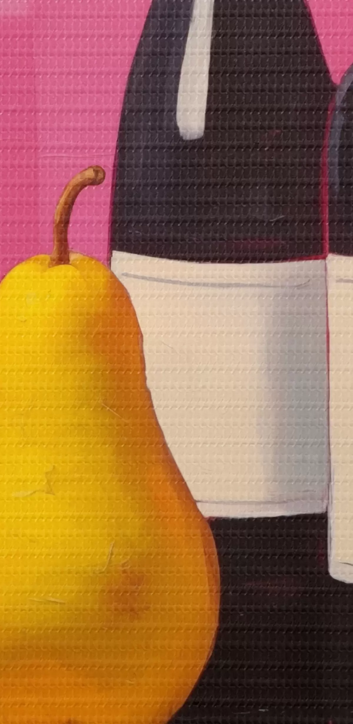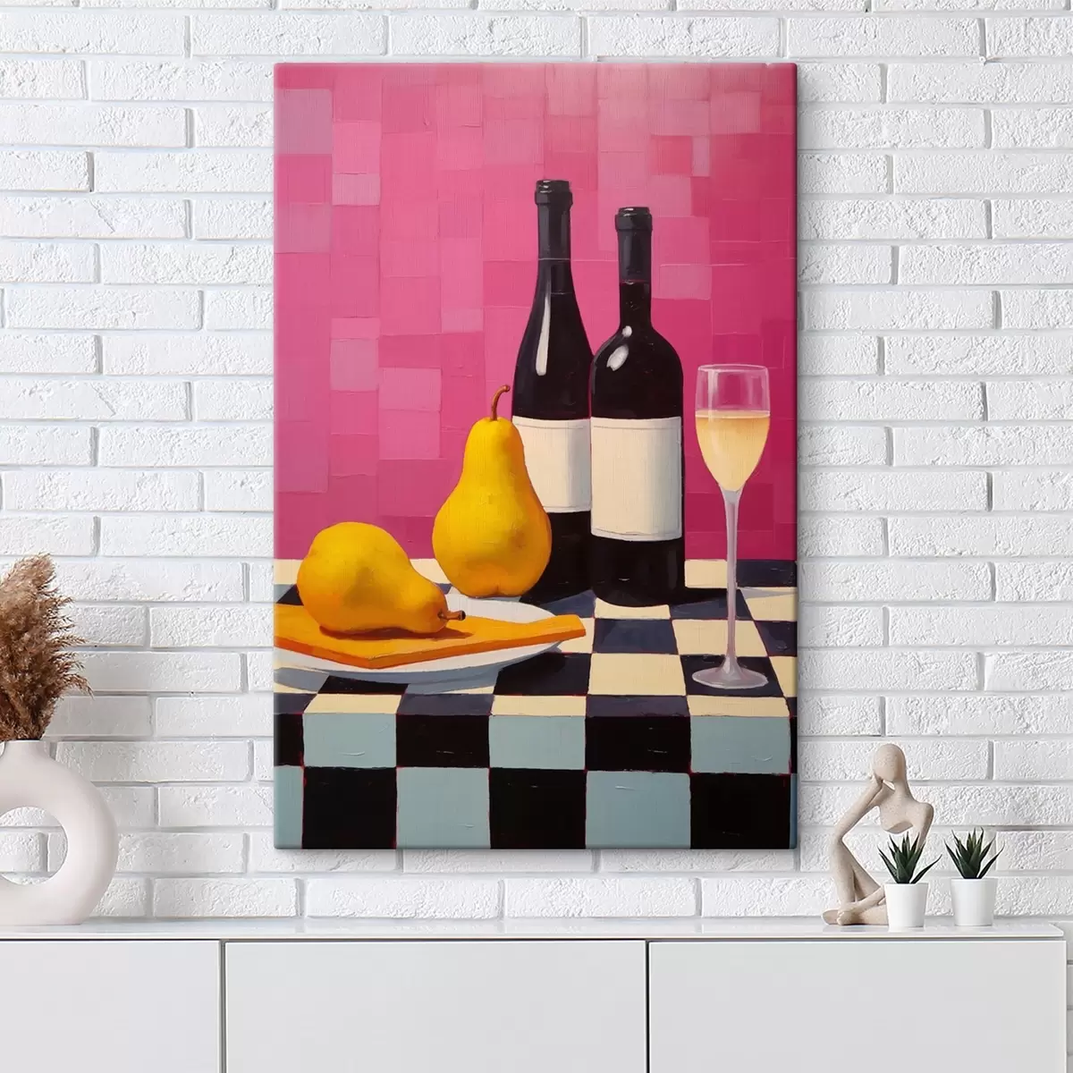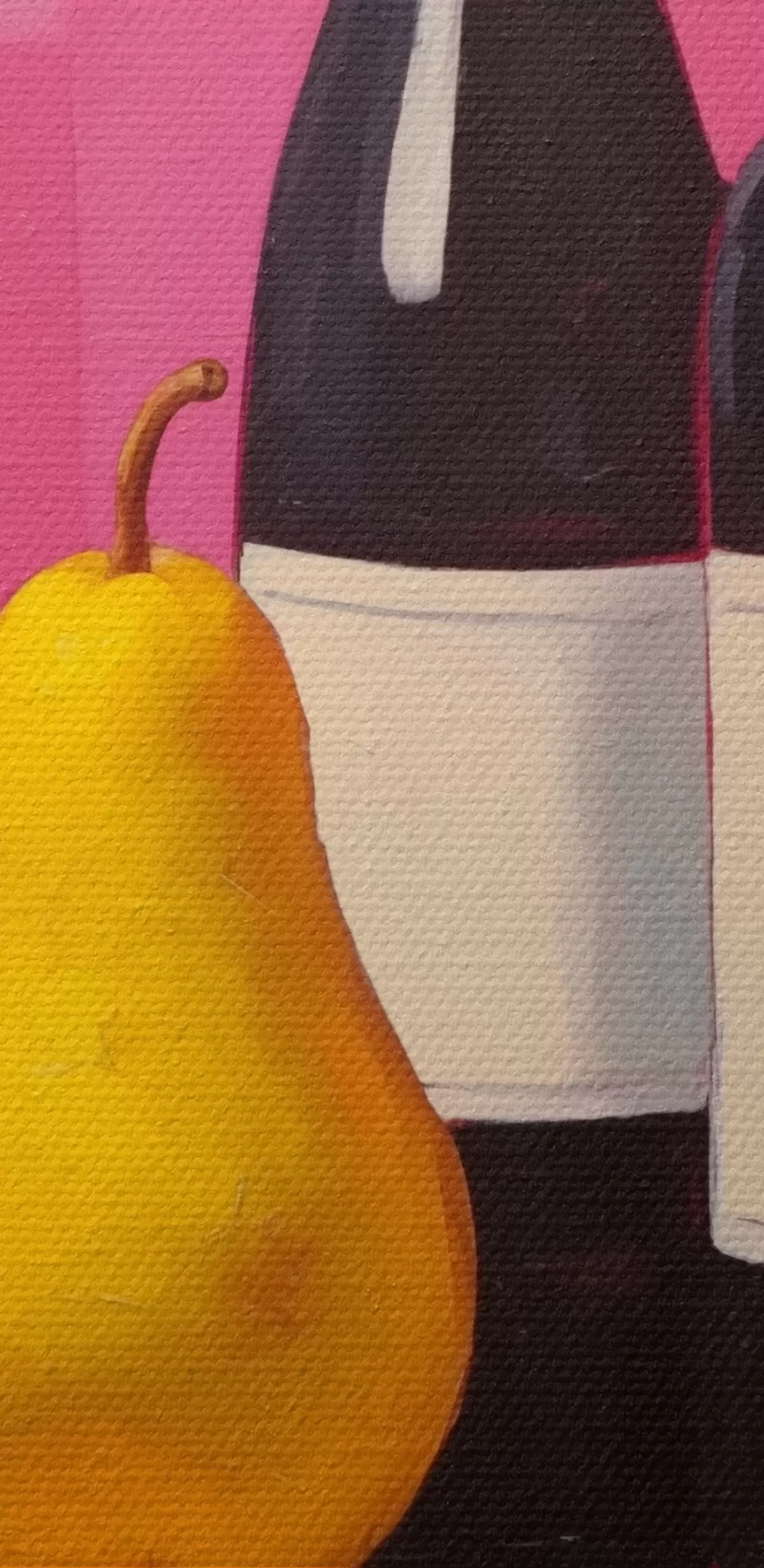 Maalid Pirnid, klaas veini ja kaks pudelit veini Nr s44683