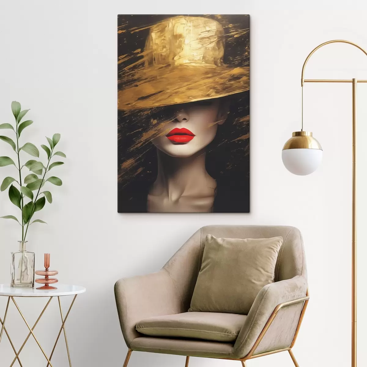 Maalid Naise nägu punase huulepulgaga laia mütsi all Nr s44691
