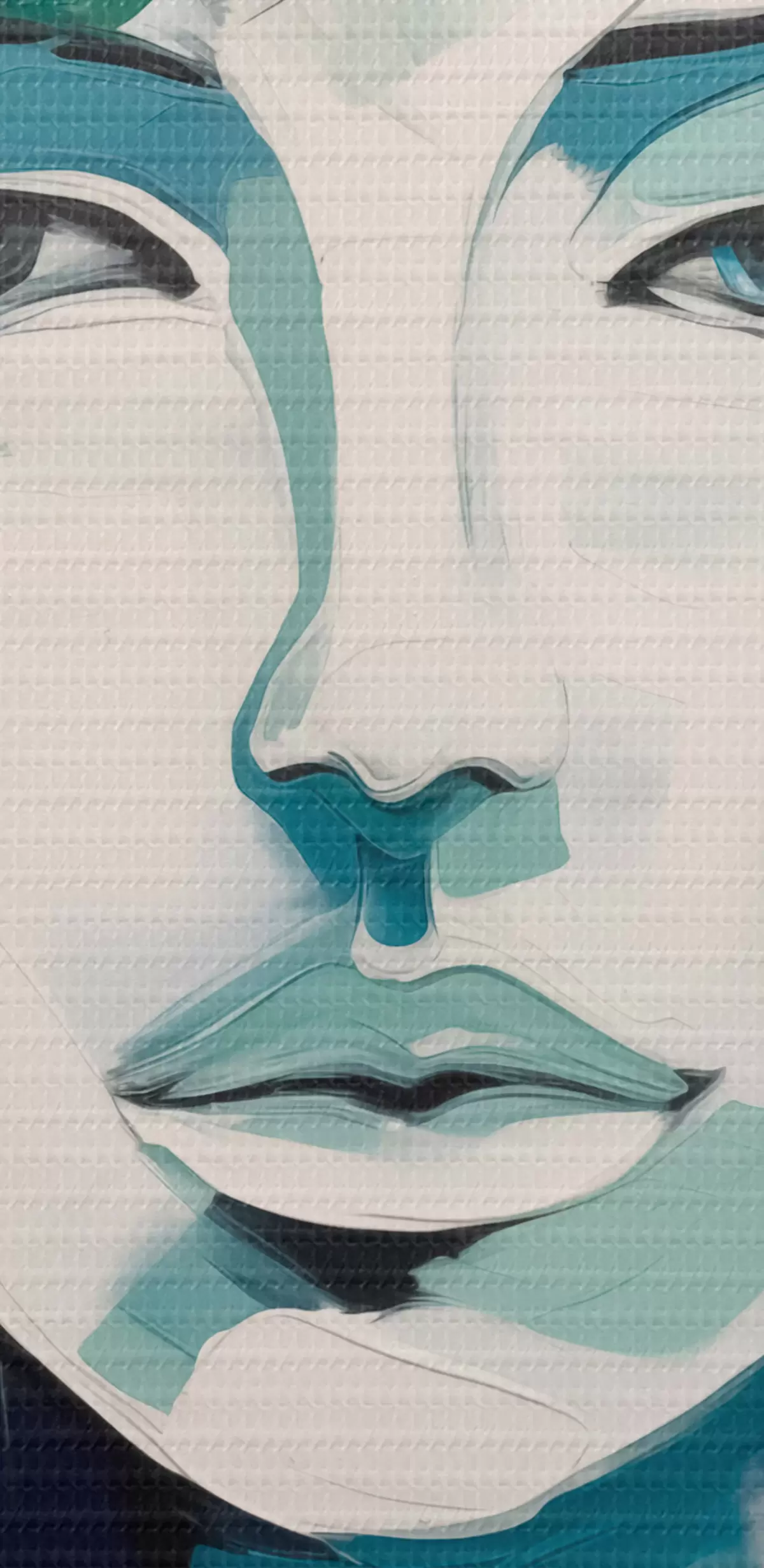 Selle lõuendi peenike niidipunus meenutab professionaalse kunstniku lõuendi pinda.