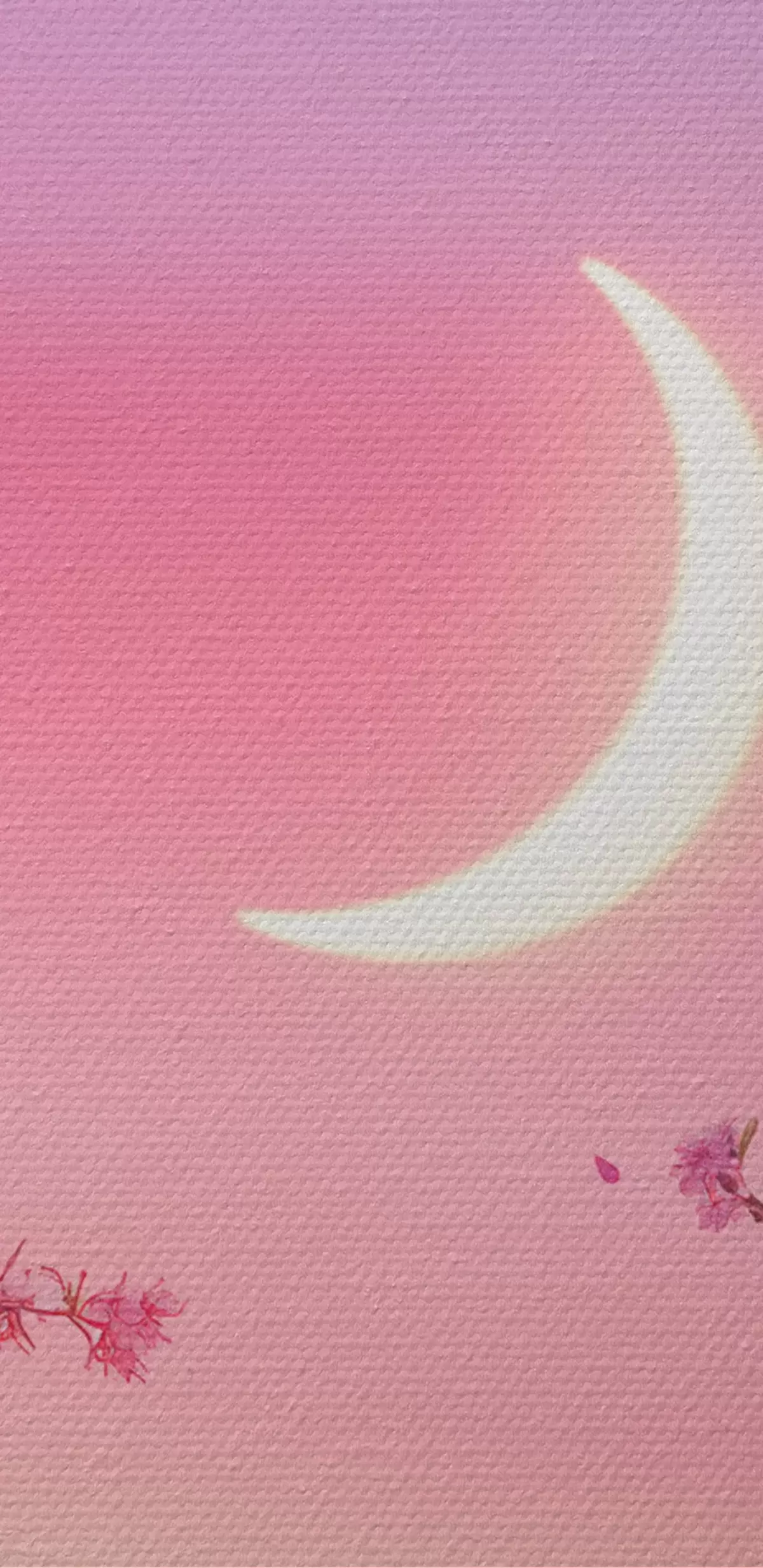 Maalid Kirsiõied, roosa taevas koos särava kuuga, realism Nr s44715