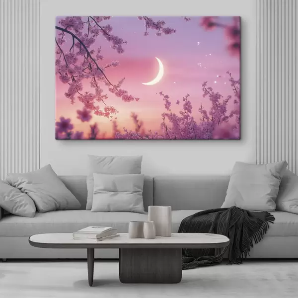 Maalid Kirsiõied, roosa taevas koos särava kuuga, realism Nr s44715