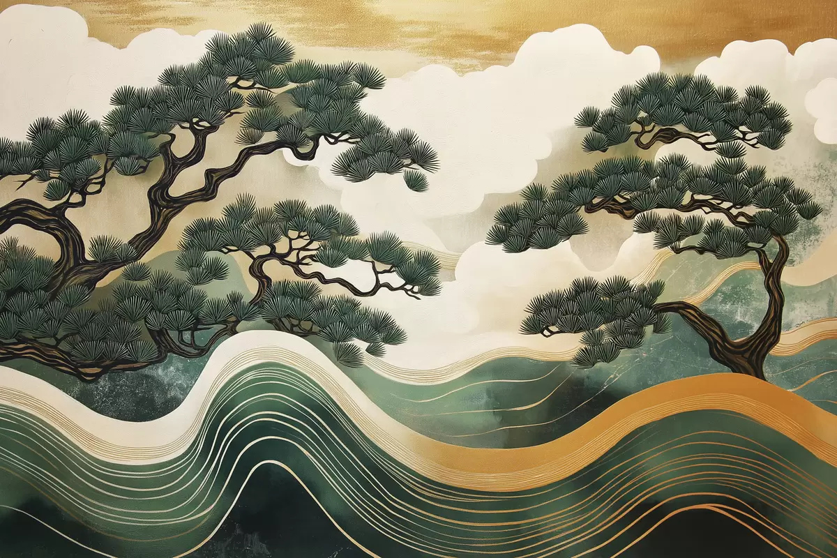Maalid Abstraktsed maastikud mändidega, hiina stiilis Nr s44720
