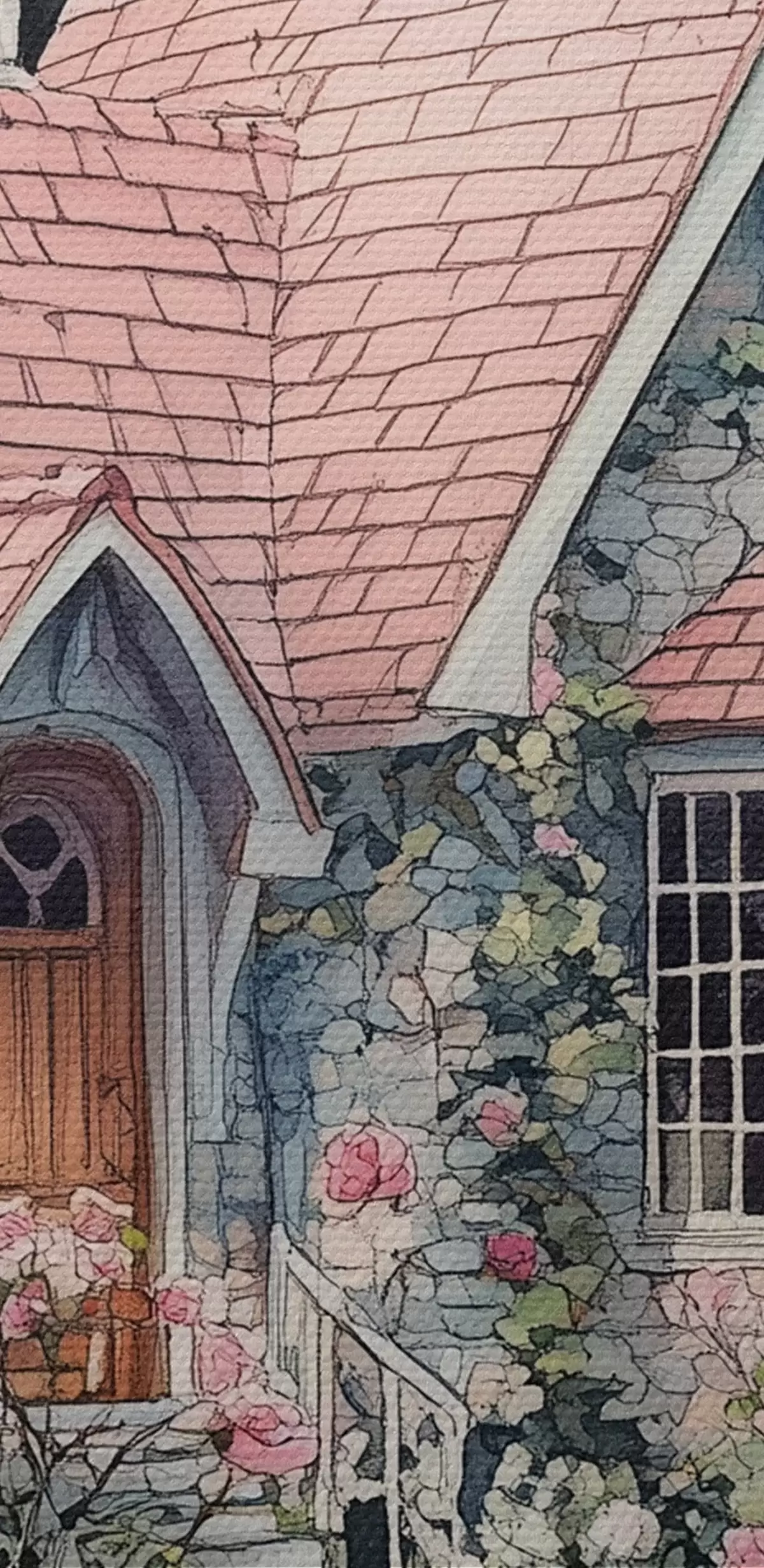 Maalid Kaunis maja kaskede, rooside aias Nr s44721