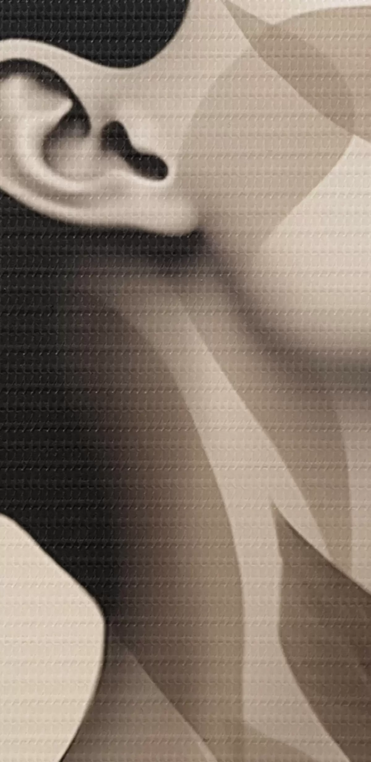 Selle lõuendi peenike niidipunus meenutab professionaalse kunstniku lõuendi pinda.