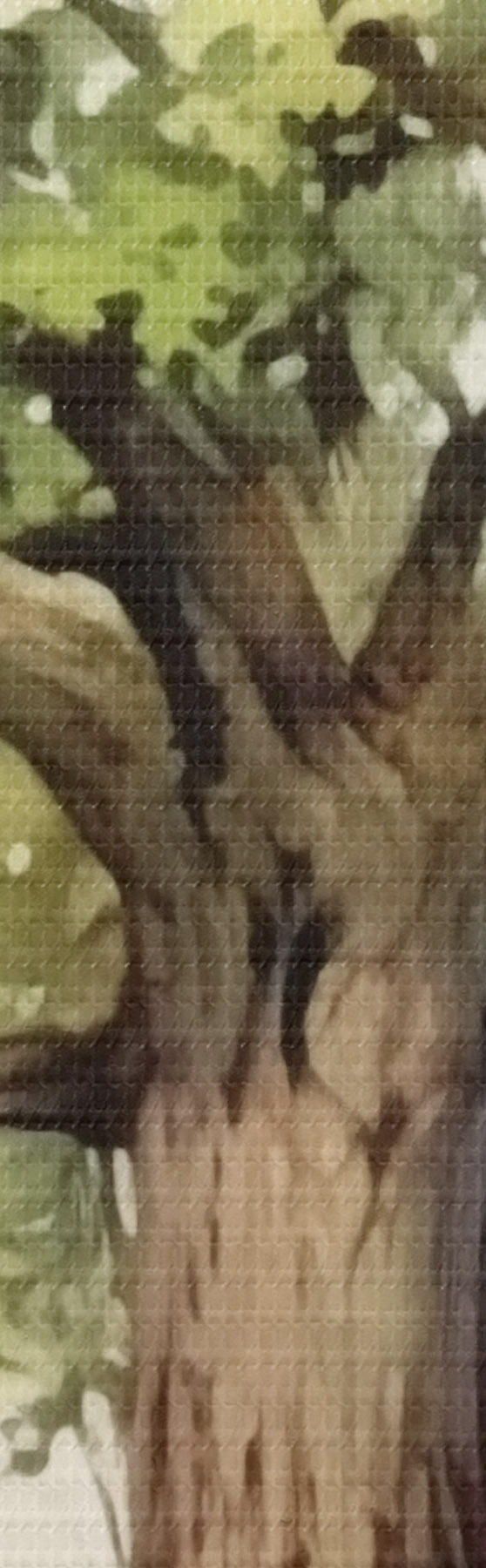 Selle lõuendi peenike niidipunus meenutab professionaalse kunstniku lõuendi pinda.