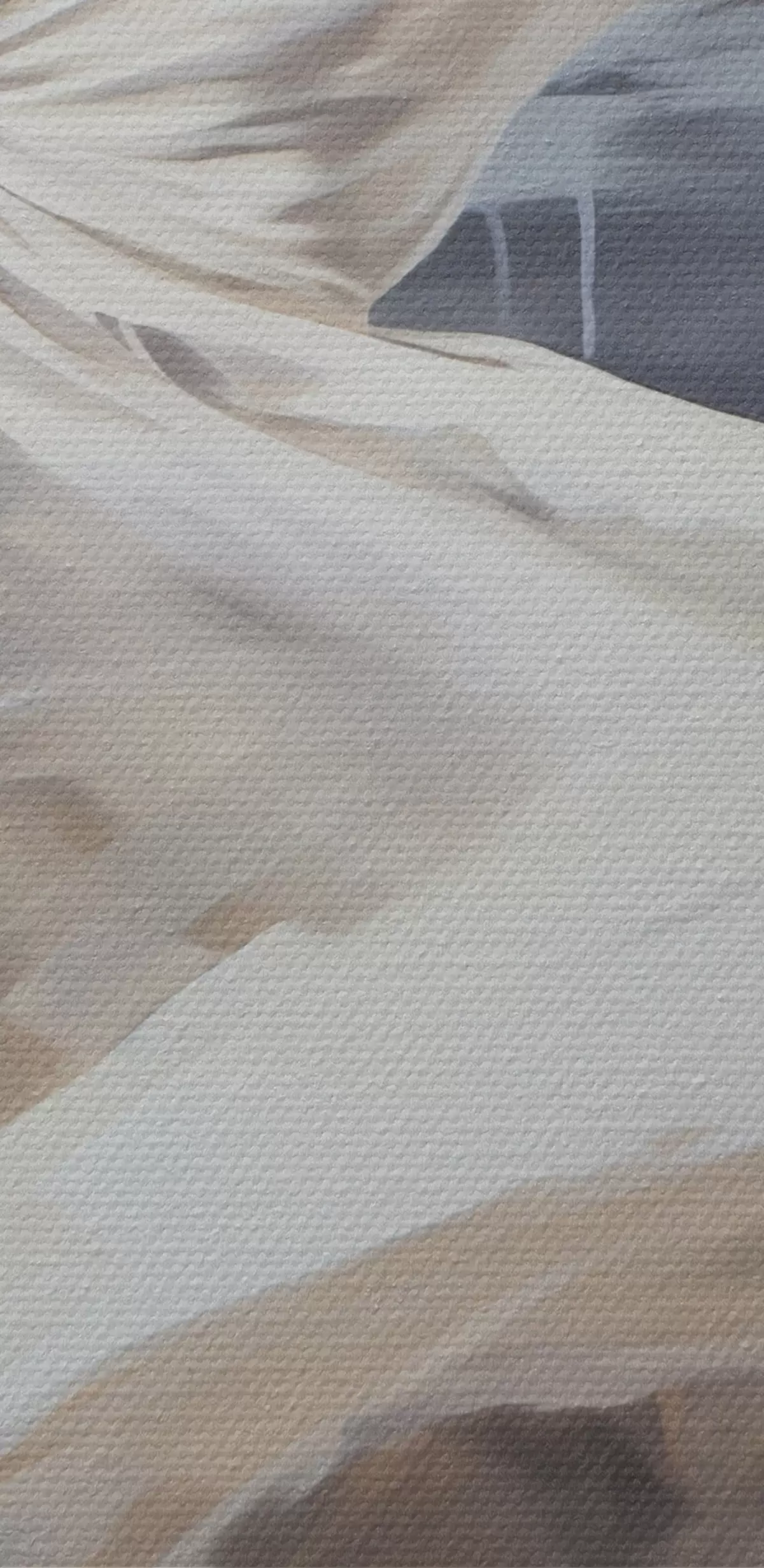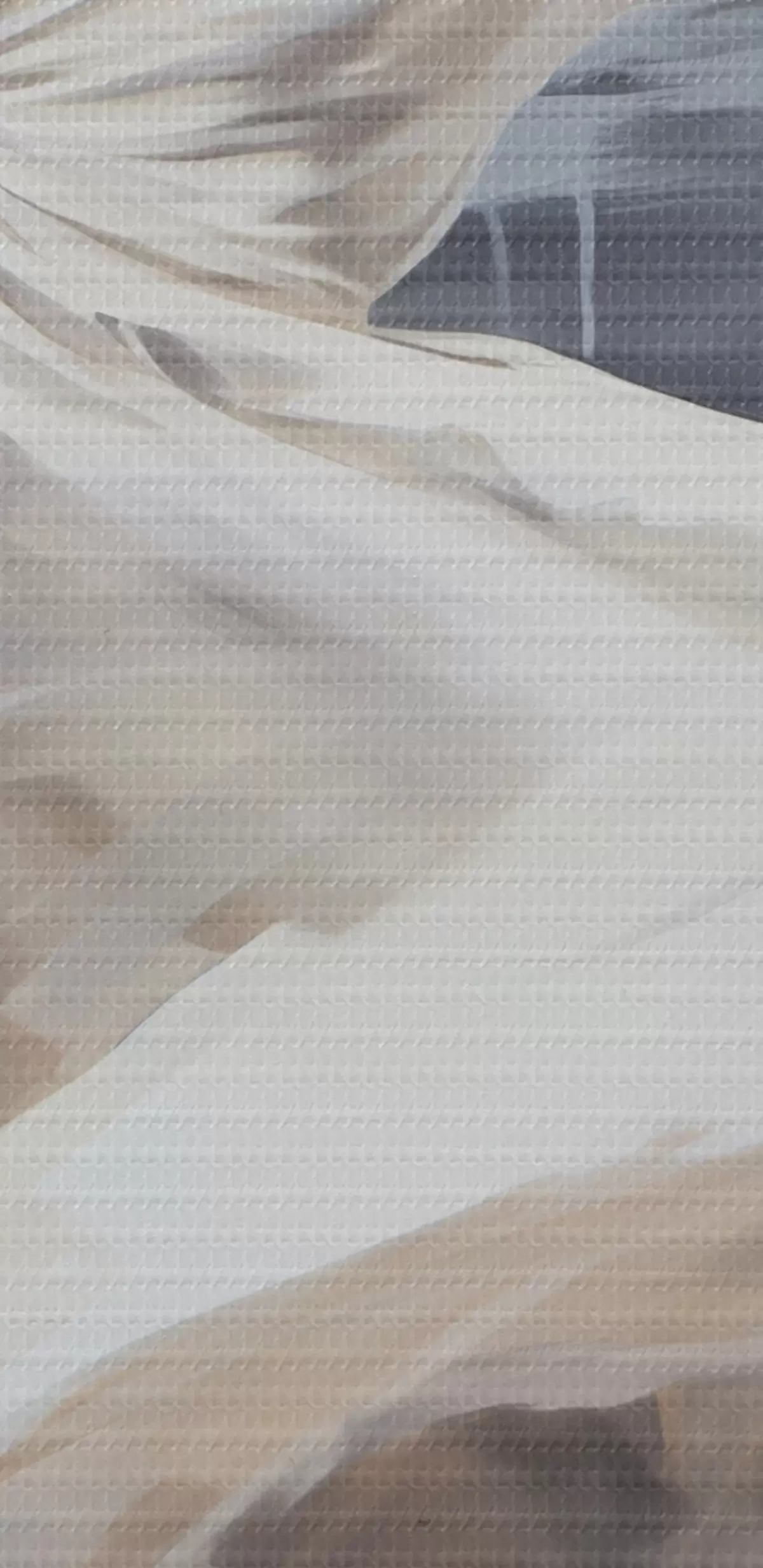 Selle lõuendi peenike niidipunus meenutab professionaalse kunstniku lõuendi pinda.