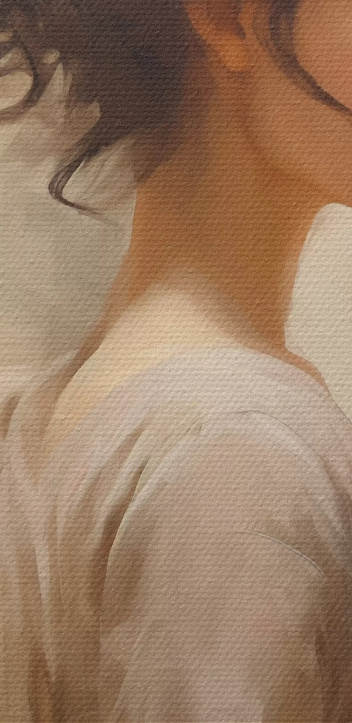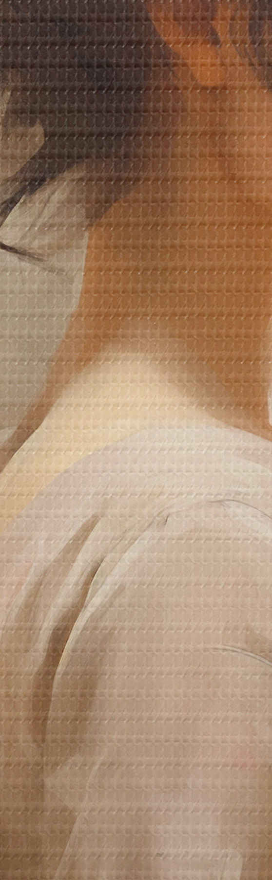 Selle lõuendi peenike niidipunus meenutab professionaalse kunstniku lõuendi pinda.