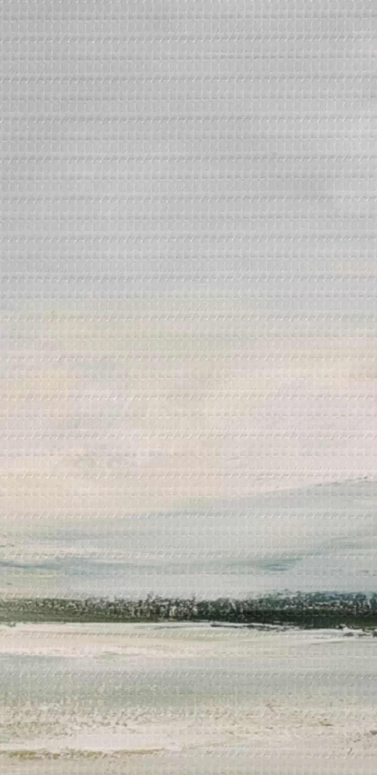 Selle lõuendi peenike niidipunus meenutab professionaalse kunstniku lõuendi pinda.