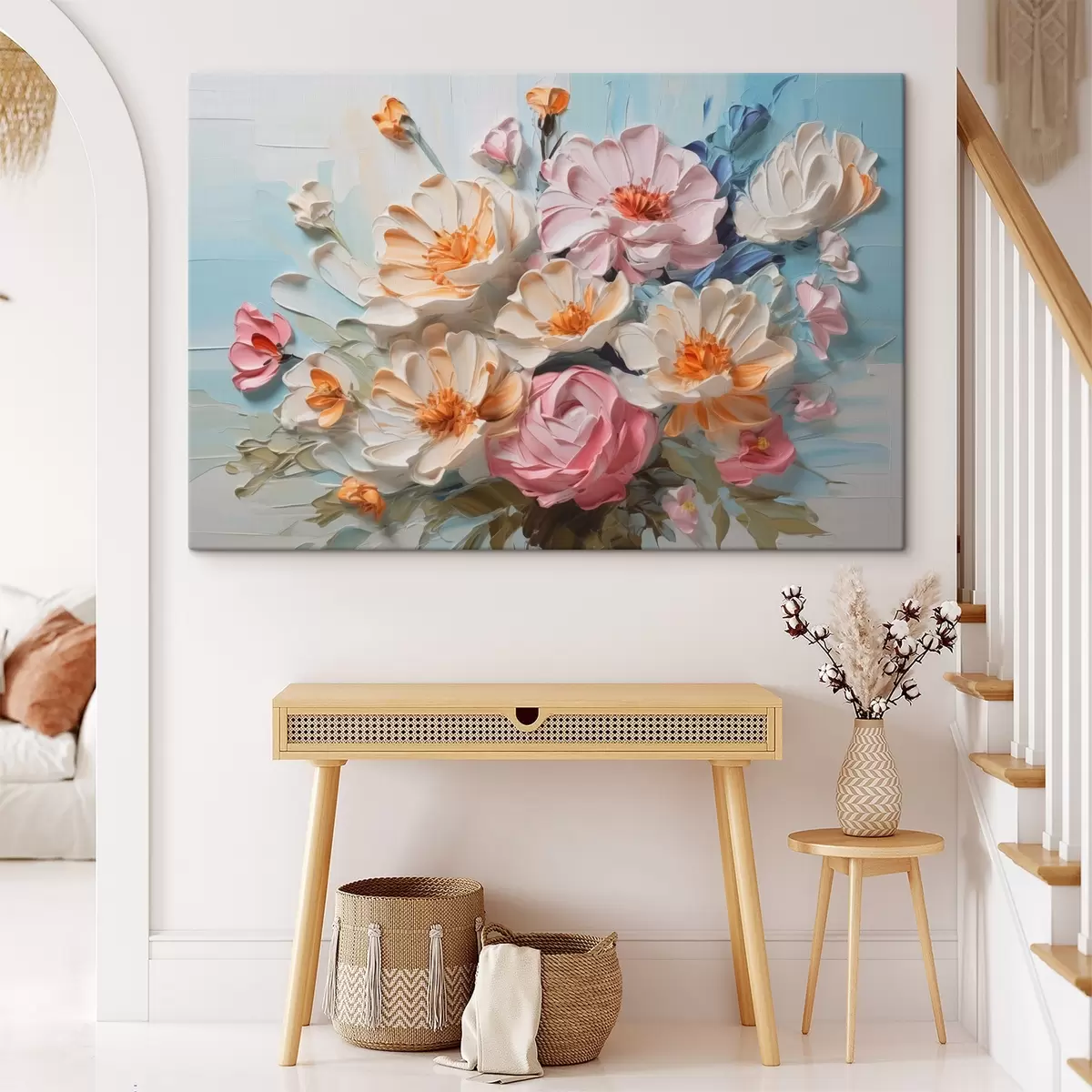 Maali võib riputada kohe pärast selle kättesaamist. Maal on pingutatud 2 cm laiusele puidust kandikule.