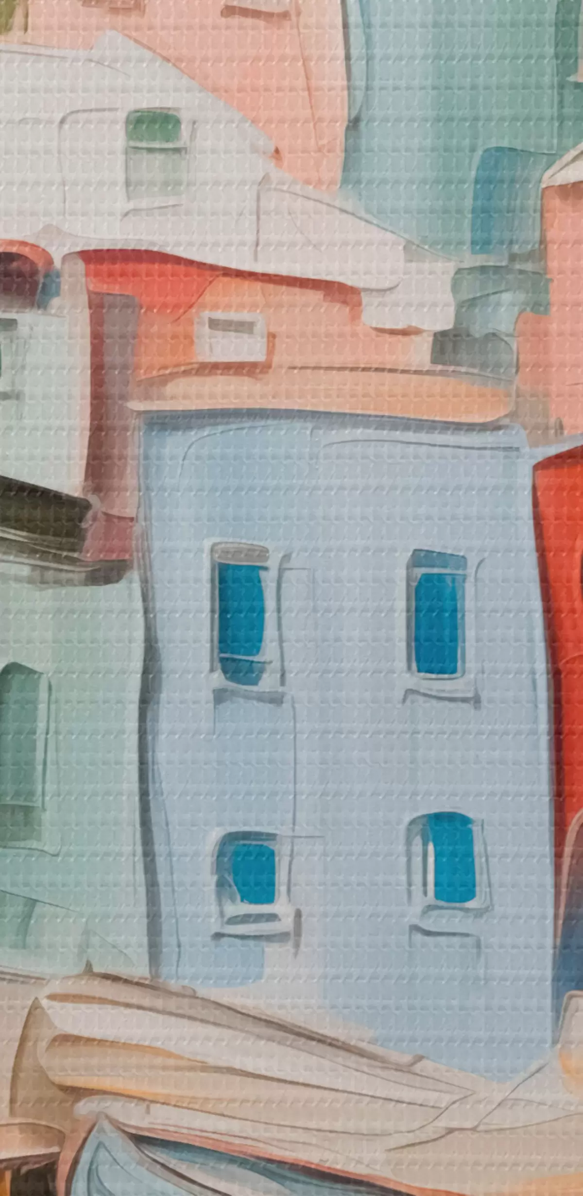 Selle lõuendi peenike niidipunus meenutab professionaalse kunstniku lõuendi pinda.